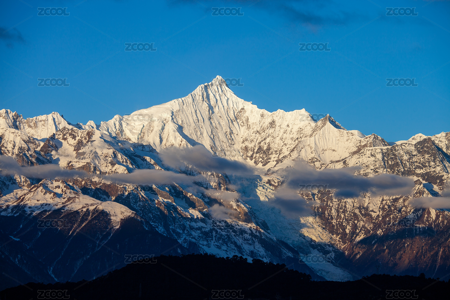 中国云南迪庆日照梅里雪山蓝天