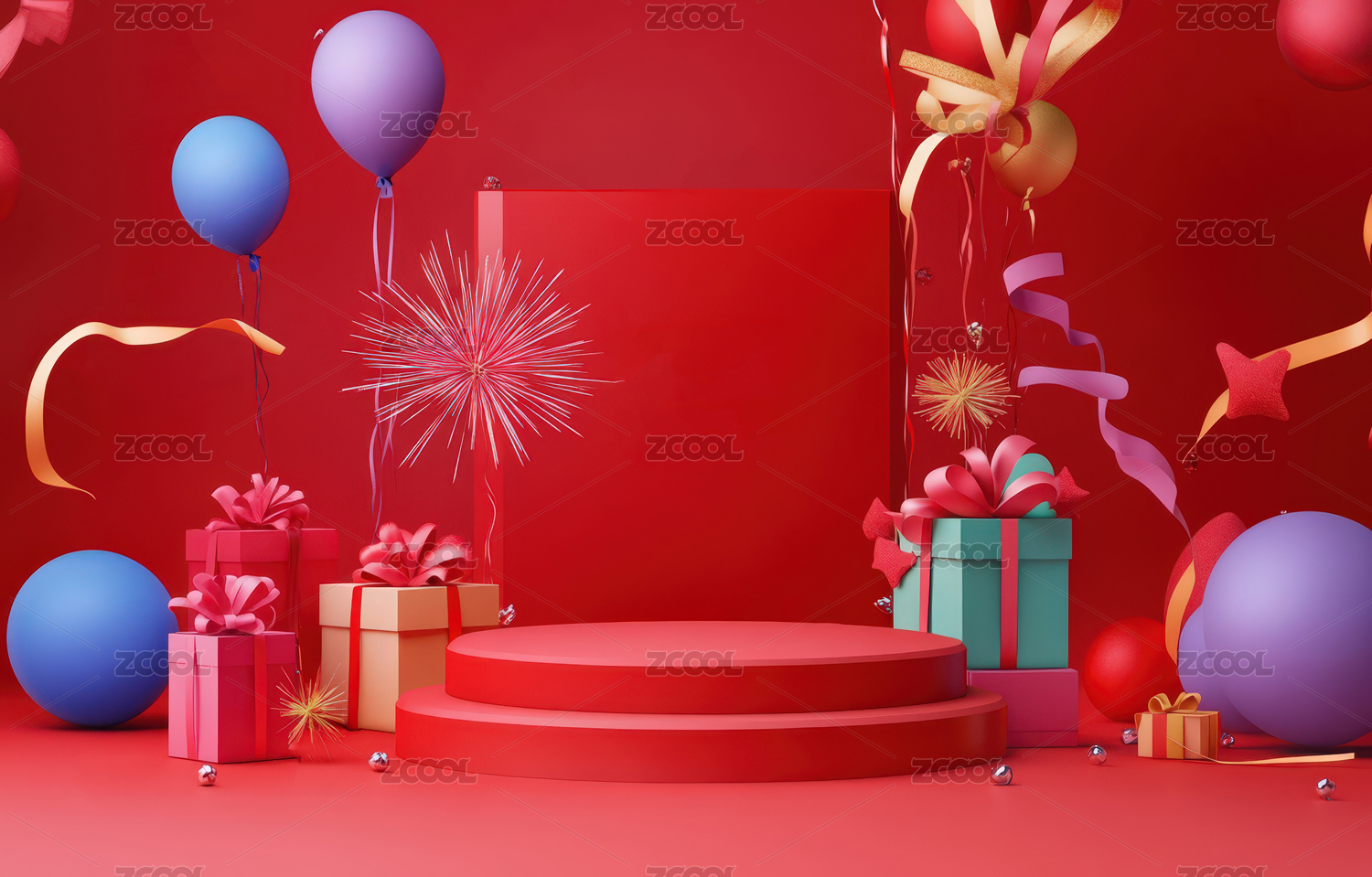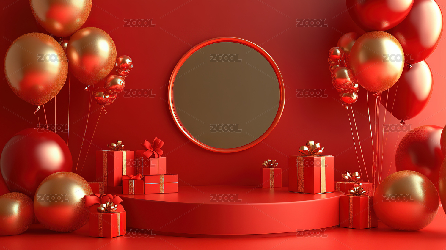 红色,节日,庆典,背景,装饰,气球,派对,舞台,喜庆,礼品盒