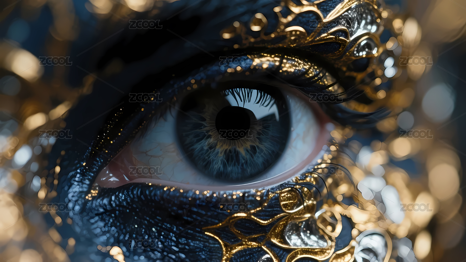 金色鳞片眼妆特写