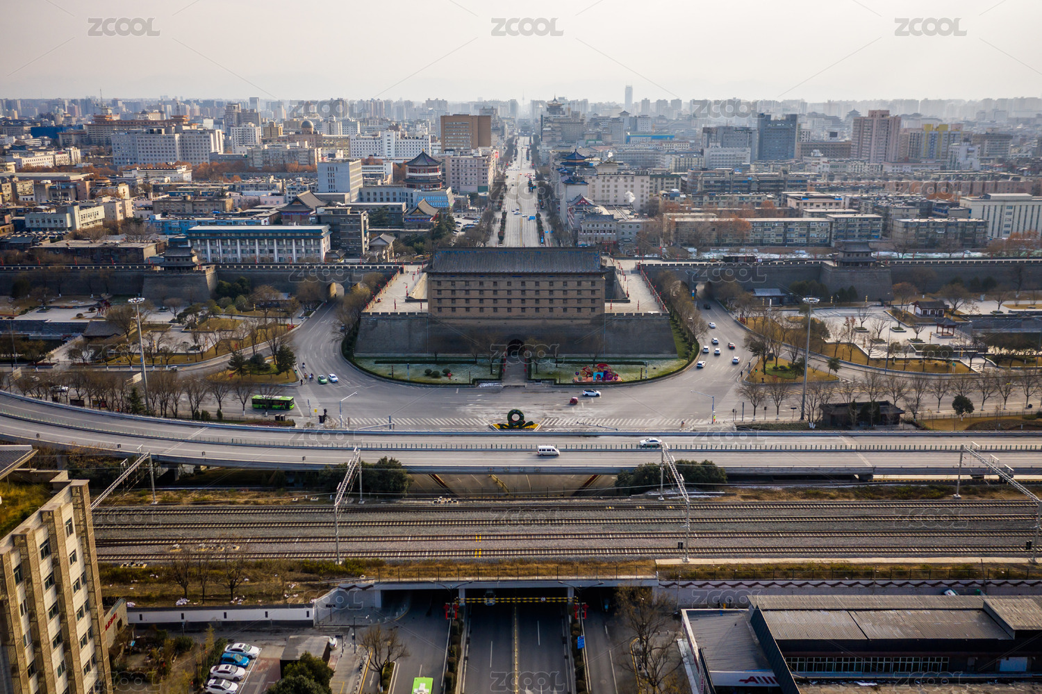 亚洲,东亚,中国,陕西省,西安,春季,航拍视角,高视角,现代,历史