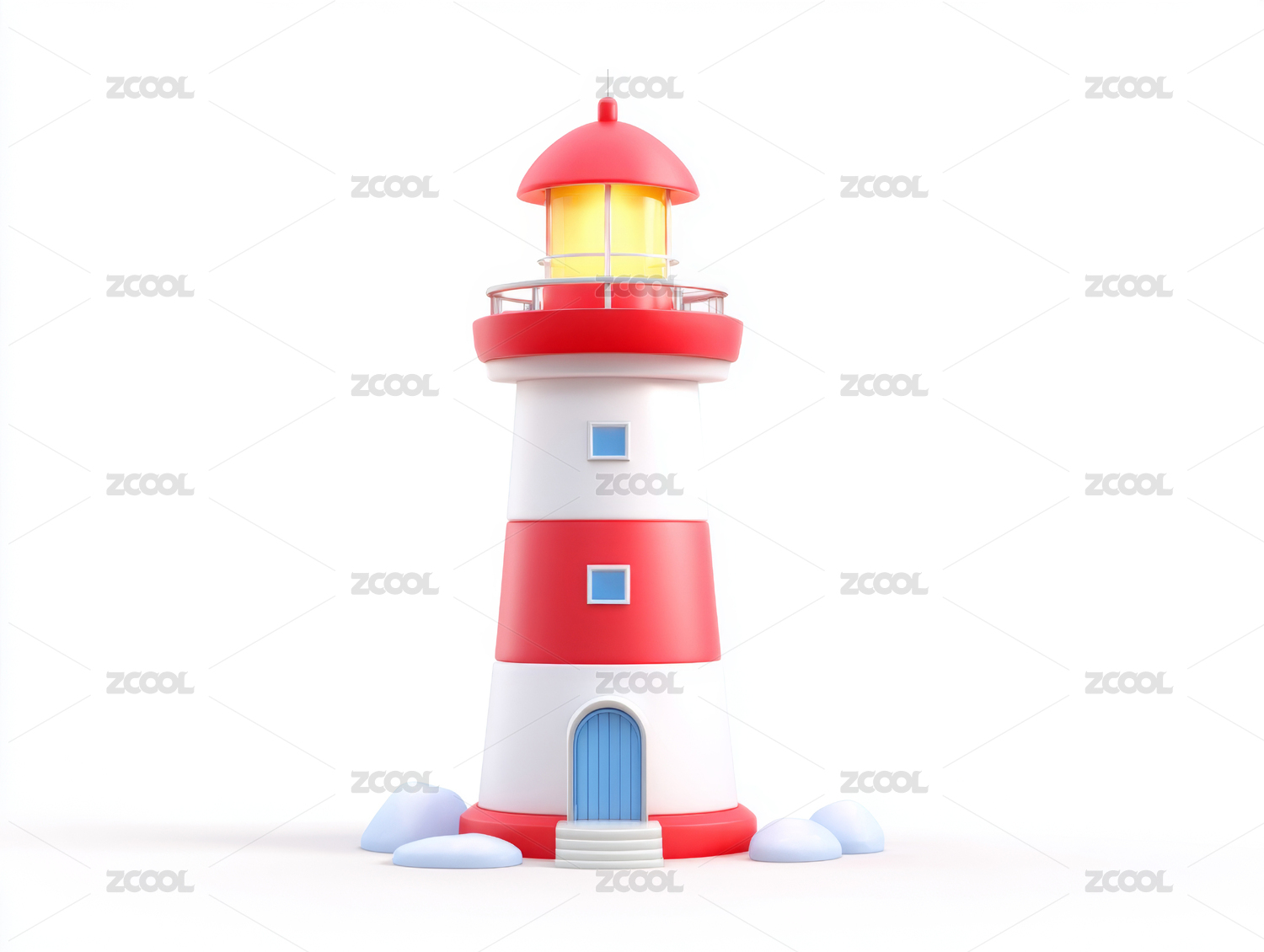 AI数字艺术,无人,创意,创造力,灯塔,塔,信号灯,灯,引导,光明