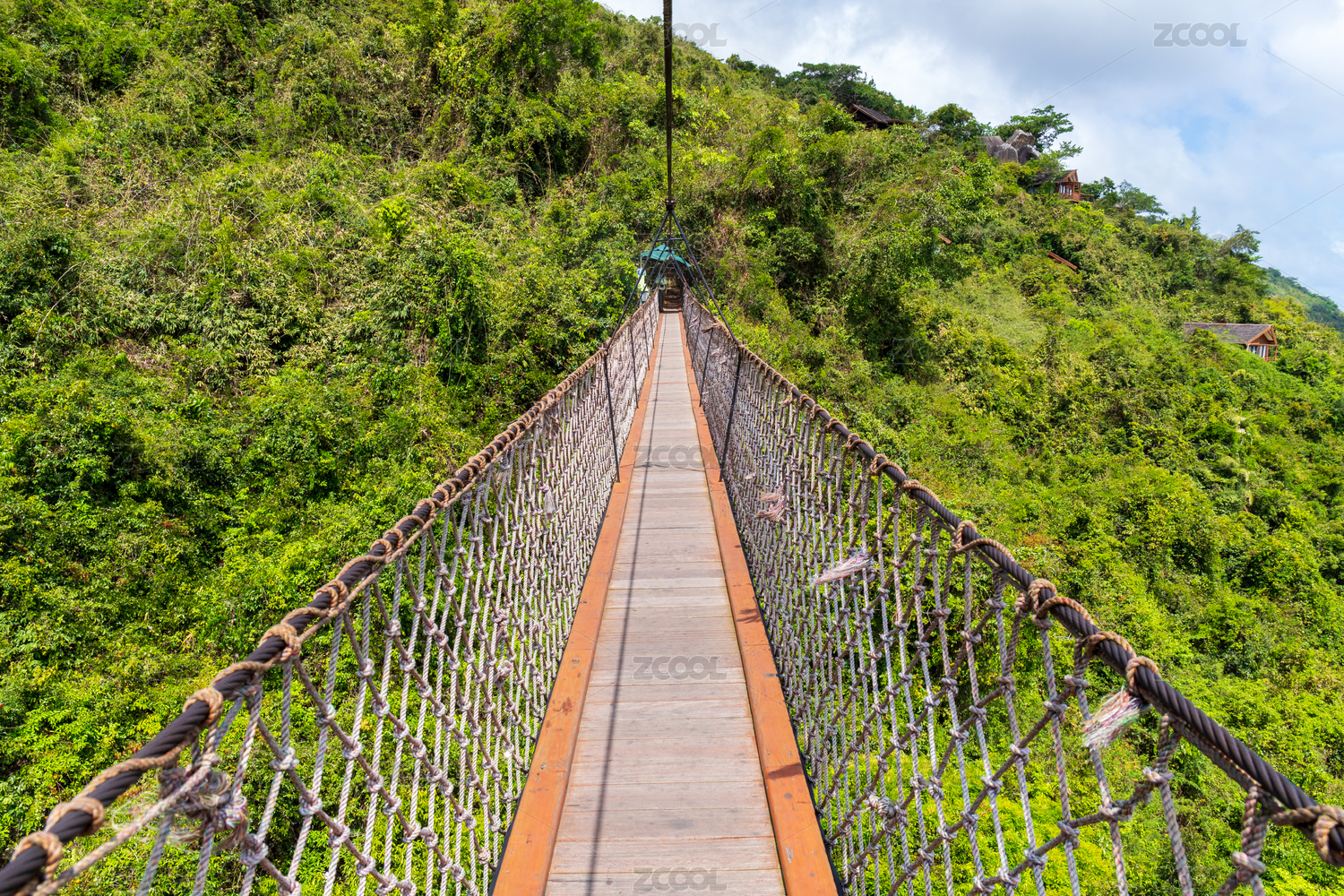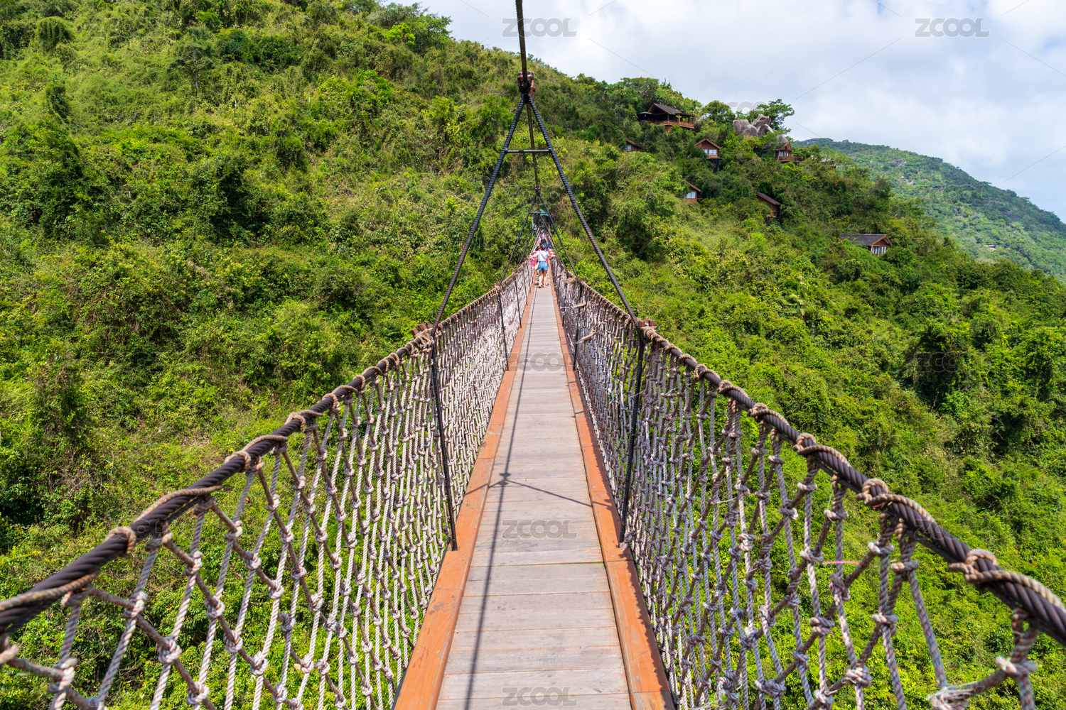 中国海南三亚亚龙湾热带森林公园里的索桥
