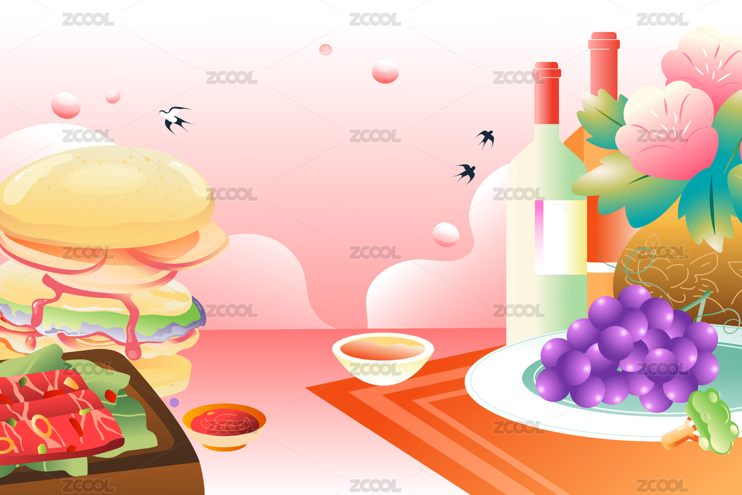 夏天,夏季,插画,烤串,撸串,烧烤,夜市,羊肉串,香菇,尖椒