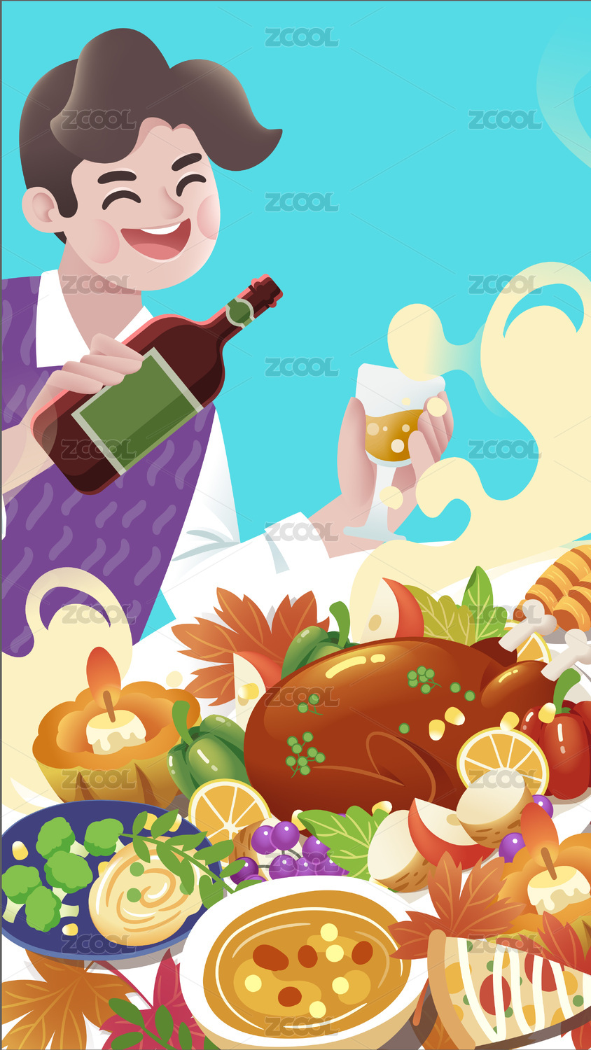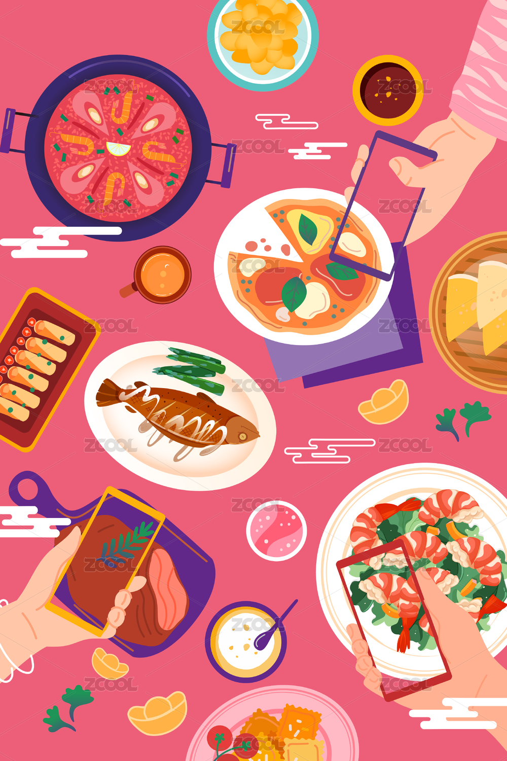 家的味道团圆年饭中餐饺子国潮矢量竖幅插画