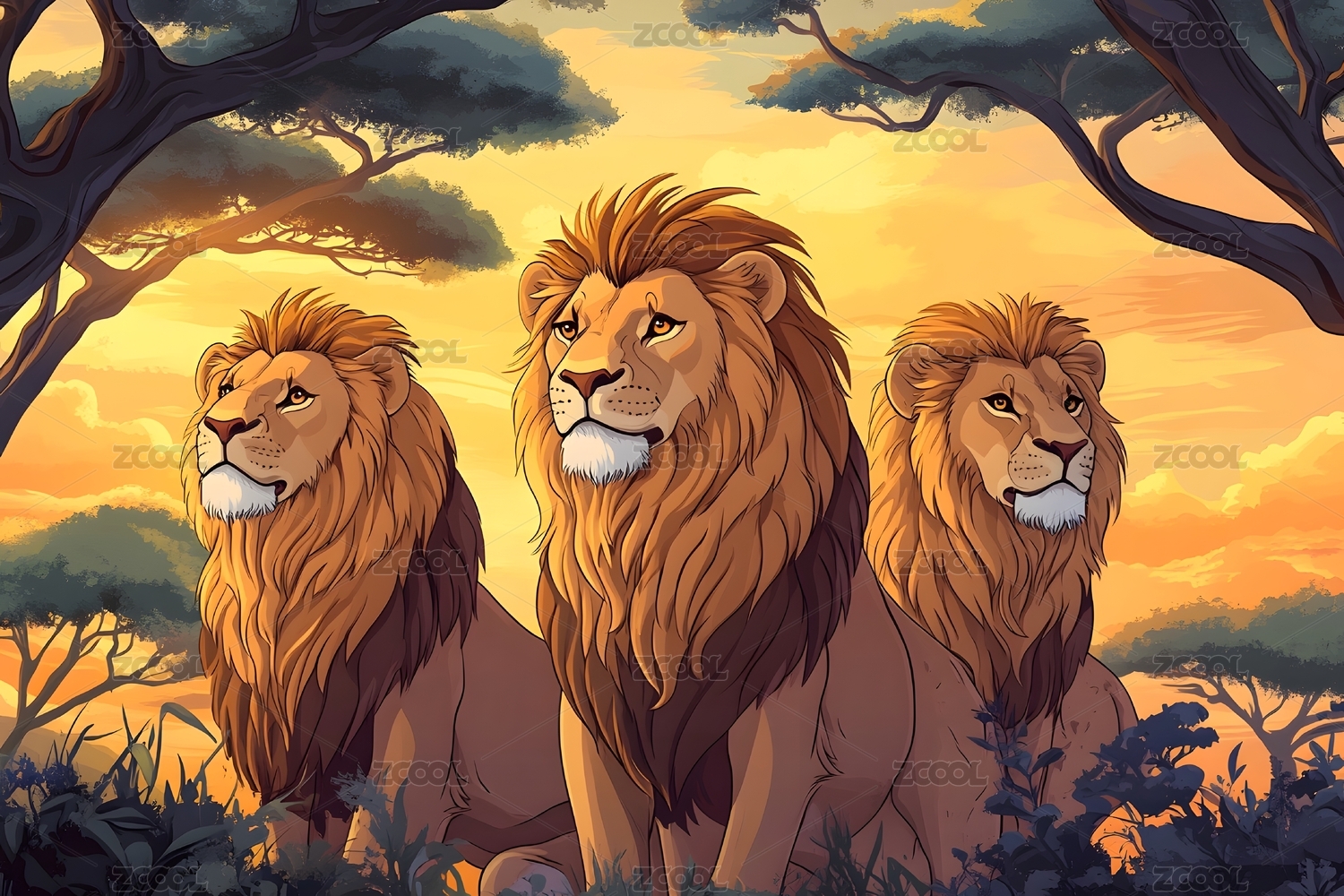 国潮,狮子,插画,动物,AIGCFG,中国风,写意