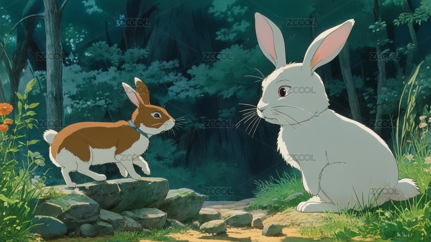 日漫,插画,动物,兔子,AIGCFG,动漫,复古,动画,漫画