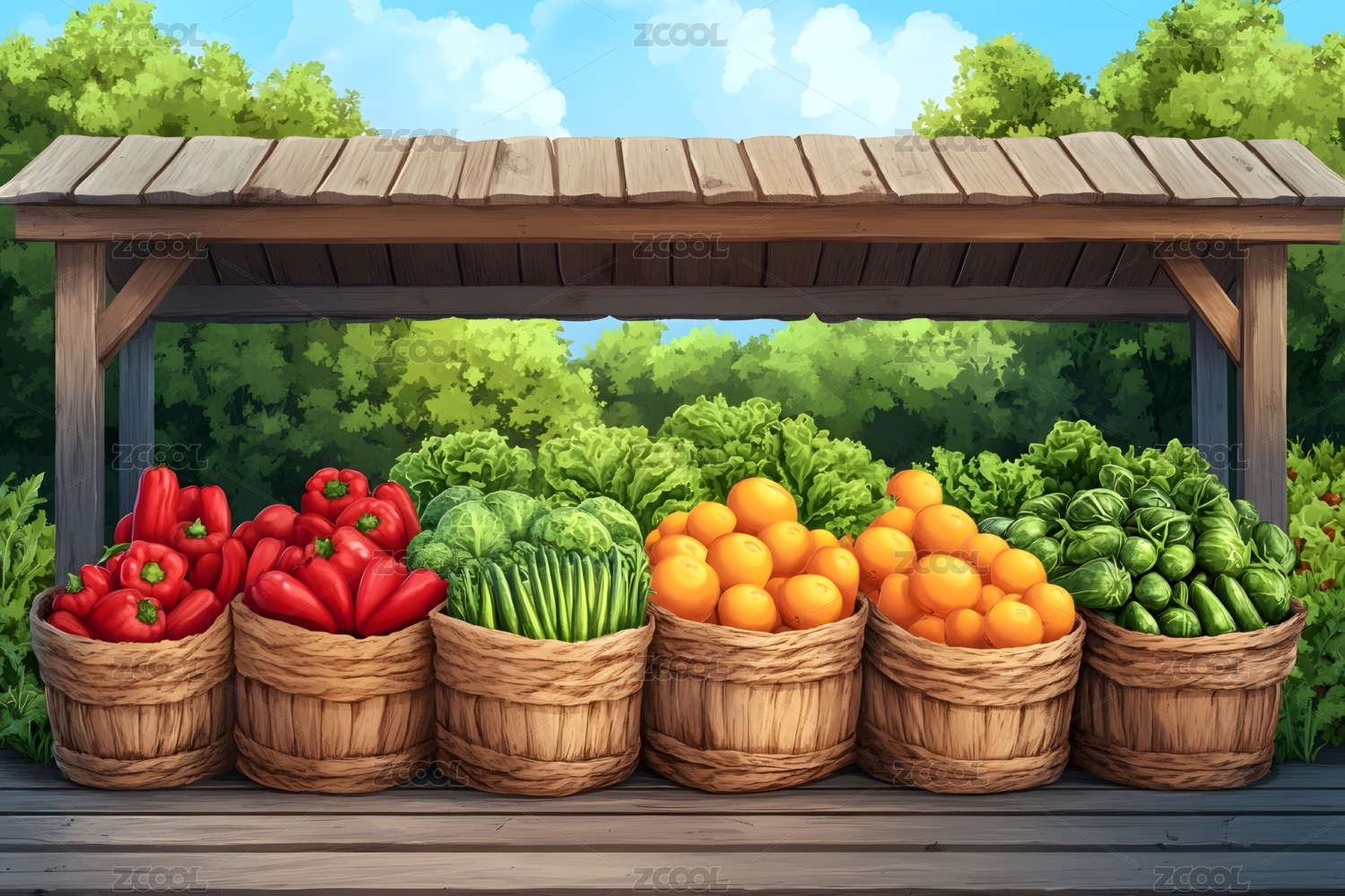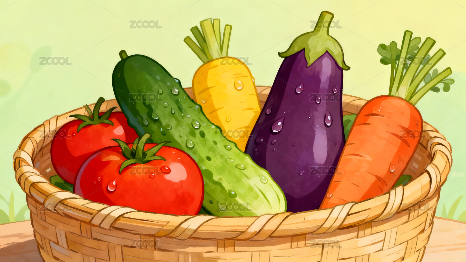 宫崎骏蔬菜竹筐里的胡萝卜黄瓜户外新鲜采摘