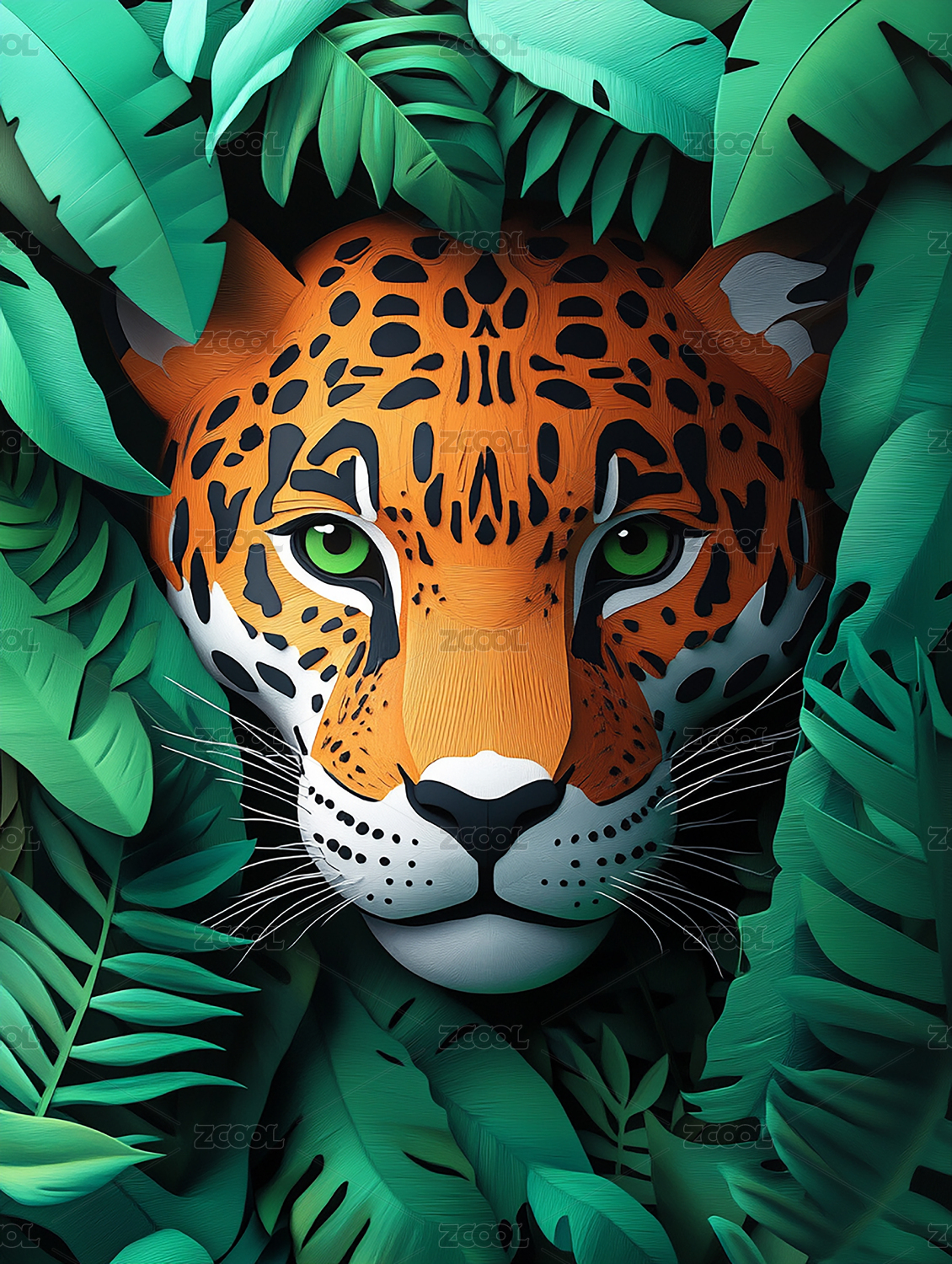 潮流嘻哈暗黑金钱豹T恤装饰图案