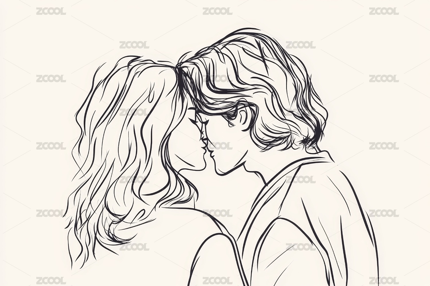 情侣接吻拥抱温馨浪漫爱情简易线稿插画