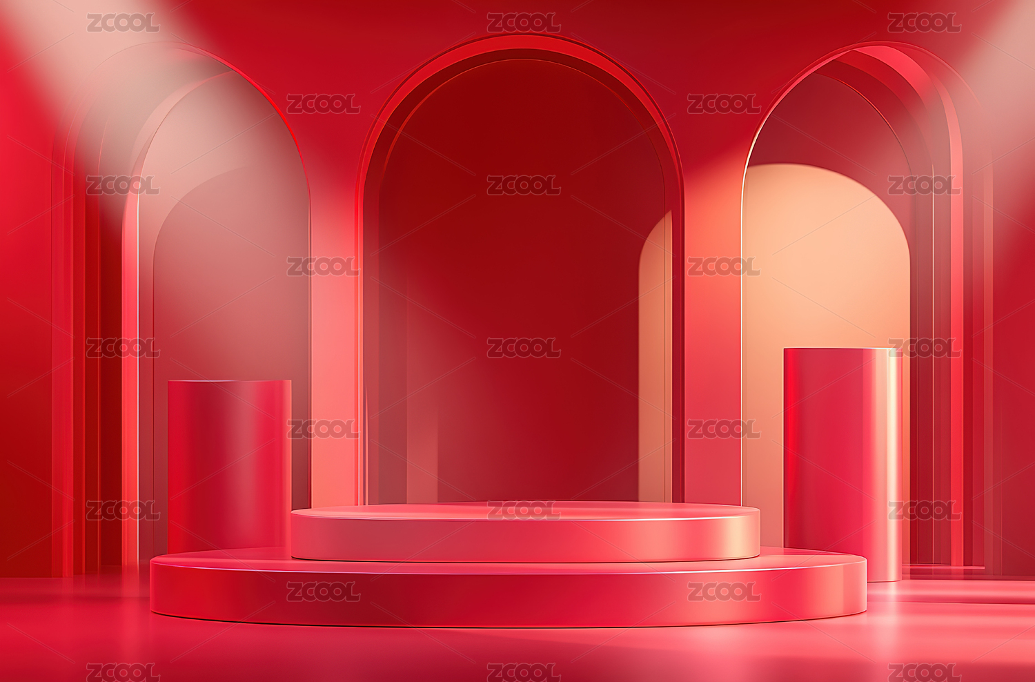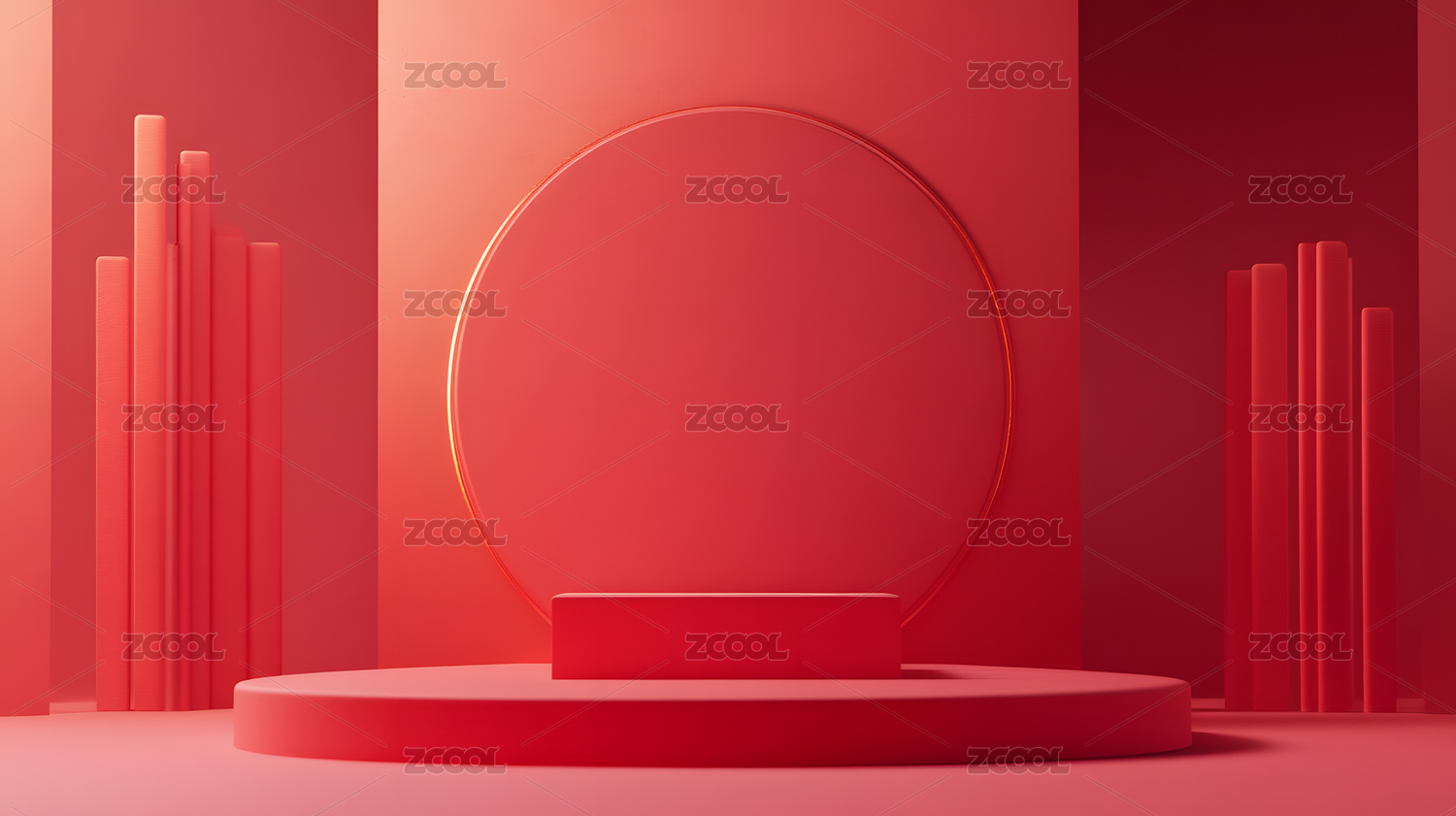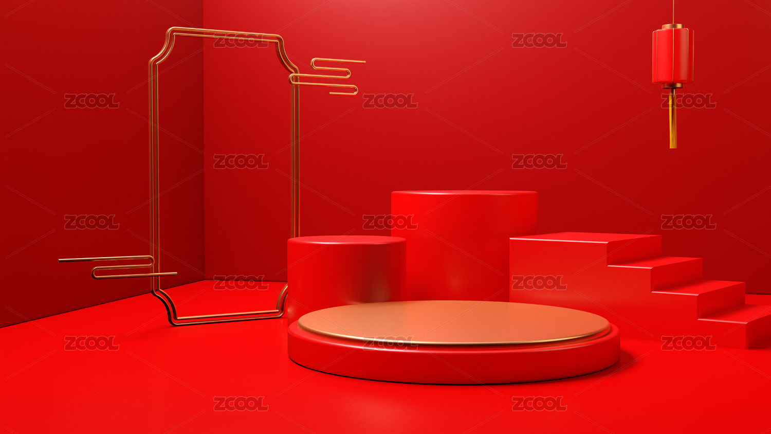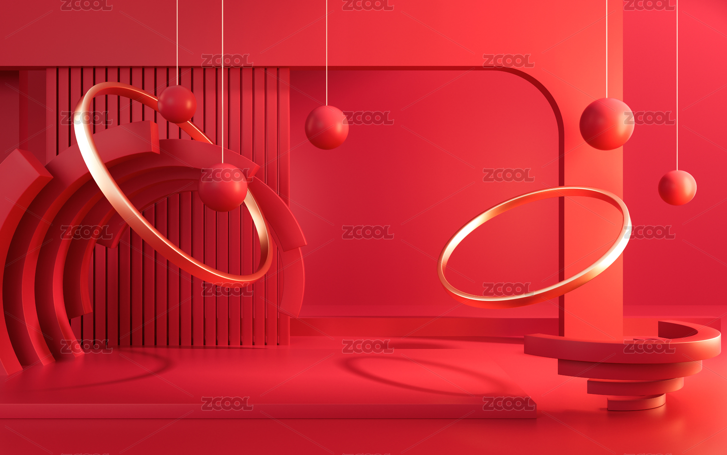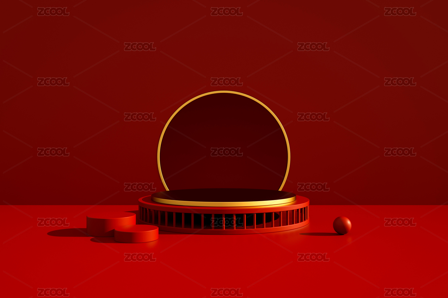 3D,3D渲染,创意,插画,背景,装饰,设计,中国红,中国风,产品