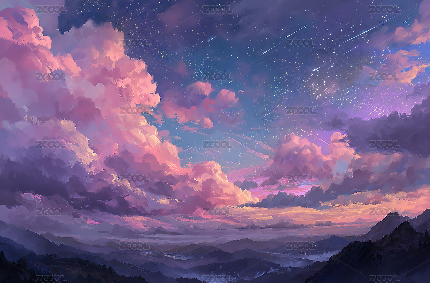 天空,动漫,背景,星空,夜空,卡通,插画,手绘,美丽,环境