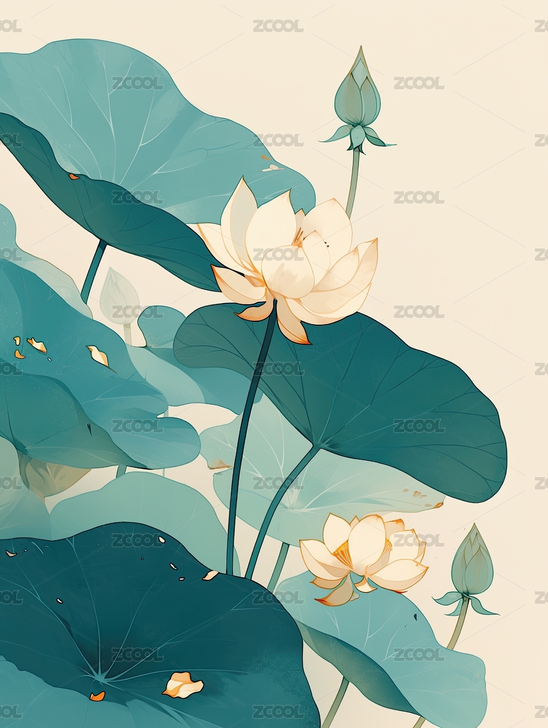 中国风荷花荷叶小场景