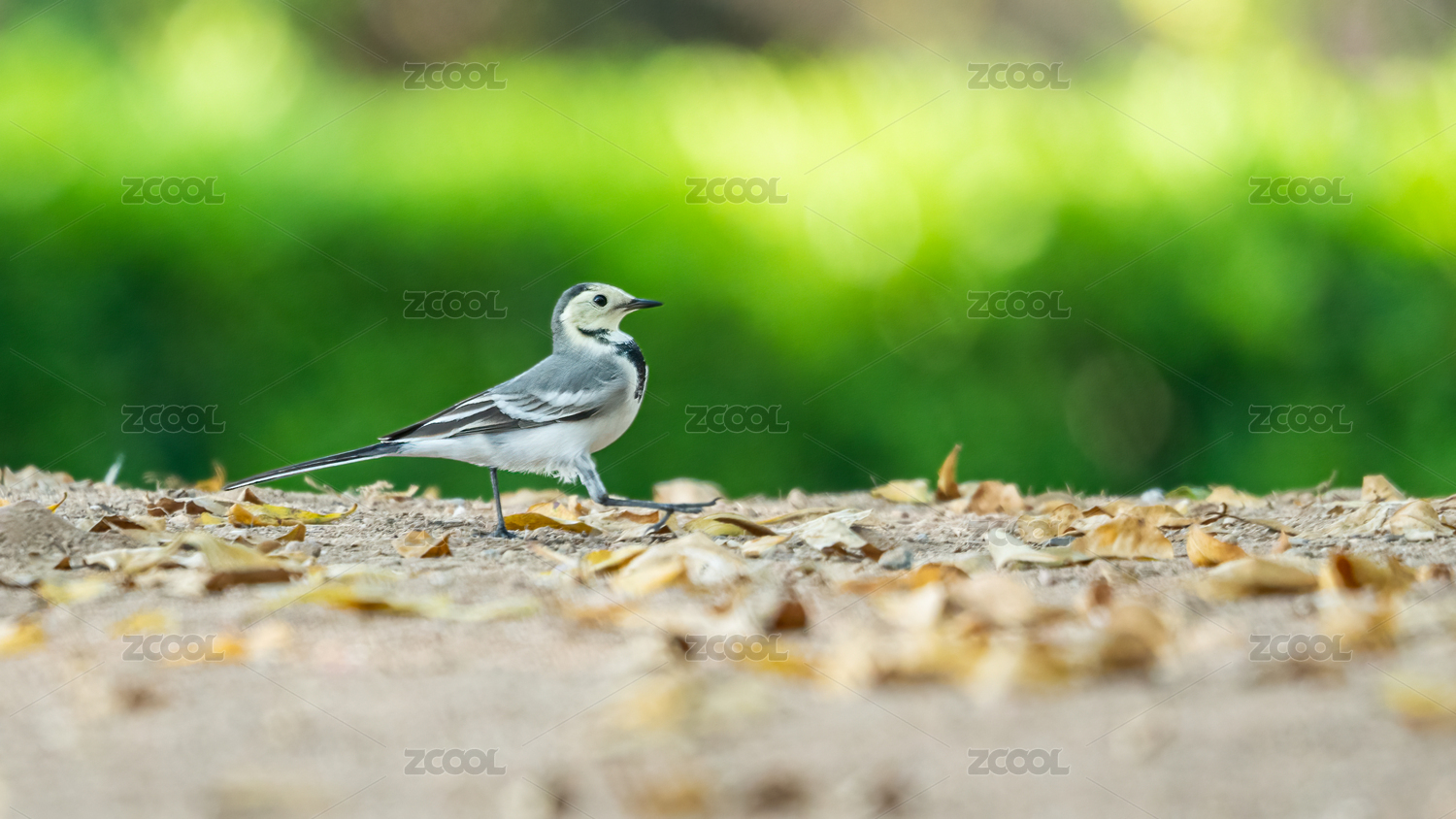 一只单独于草场上活动觅食的白鹡鸰鸟
