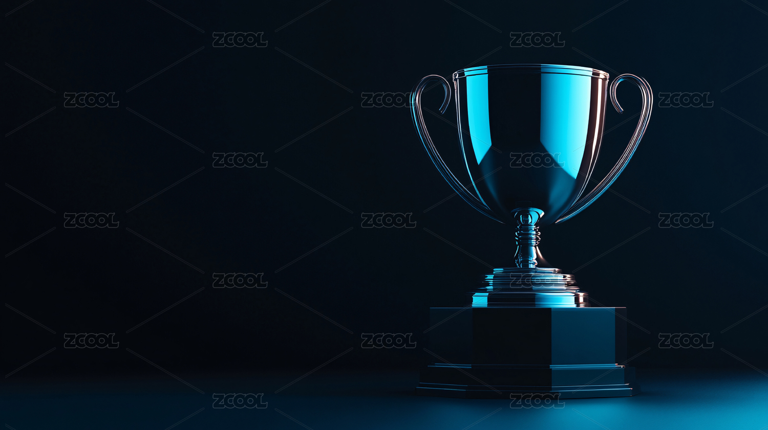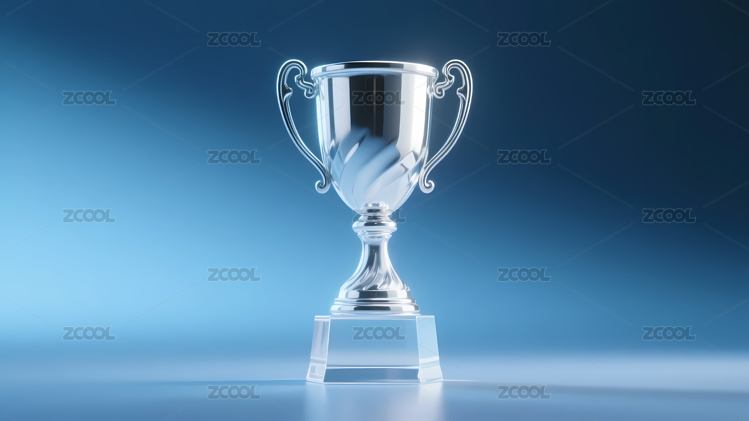 水晶奖杯在蓝色科技光影中展现未来荣誉