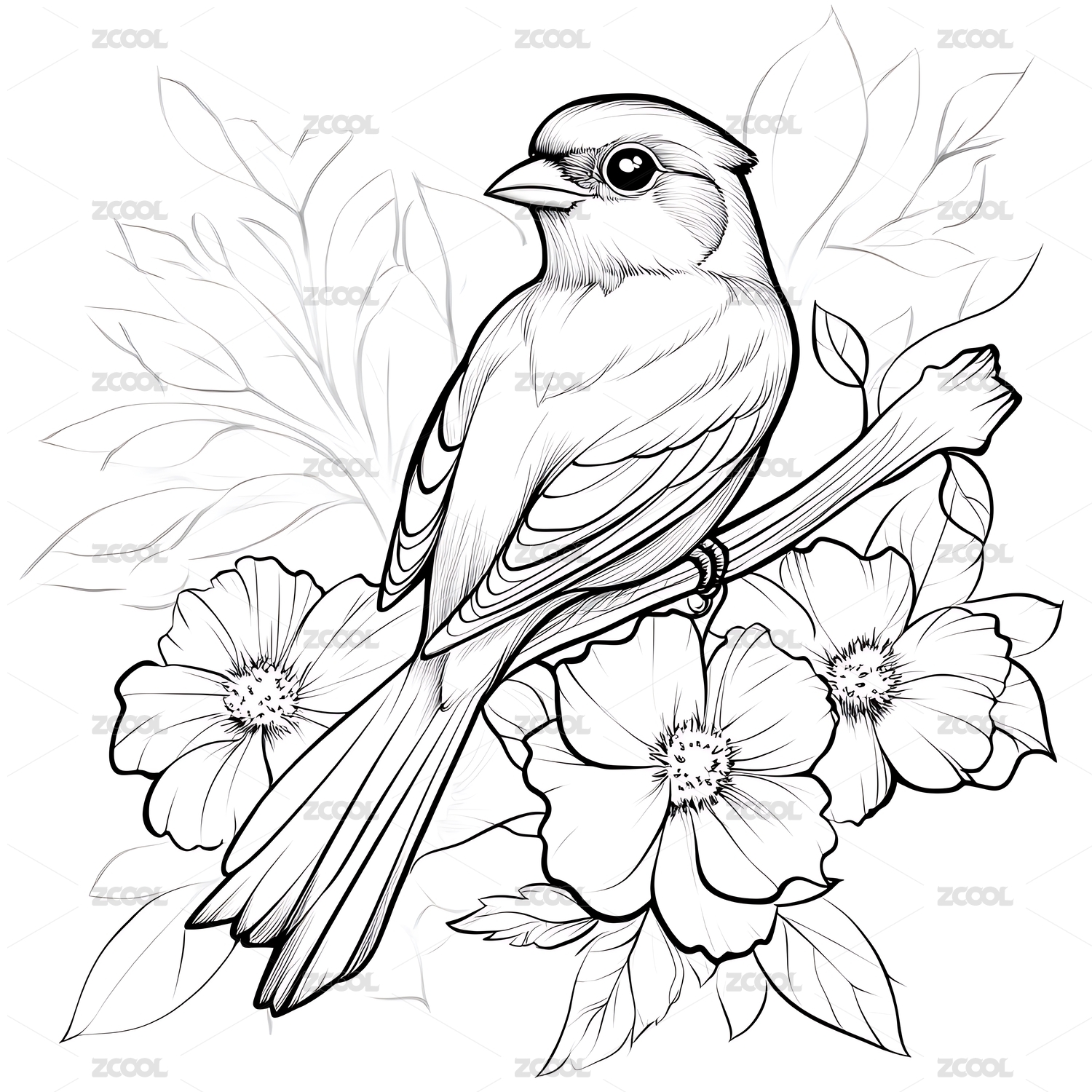 鸟,鸟类,栖息,户外,动物,动物主题,线稿,手绘,草图,速写