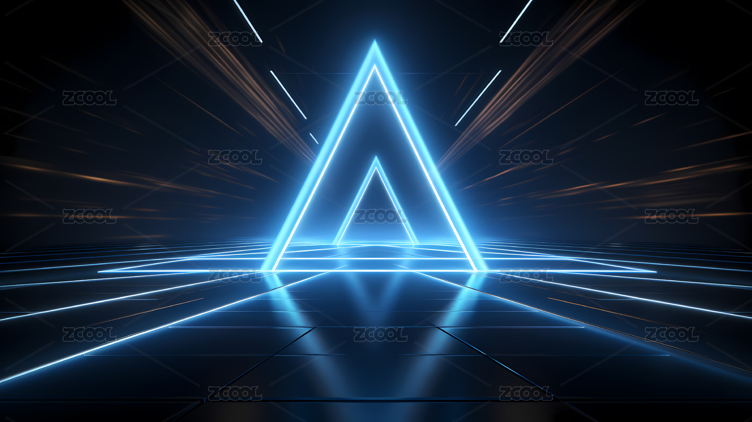 蓝色三角形光线隧道