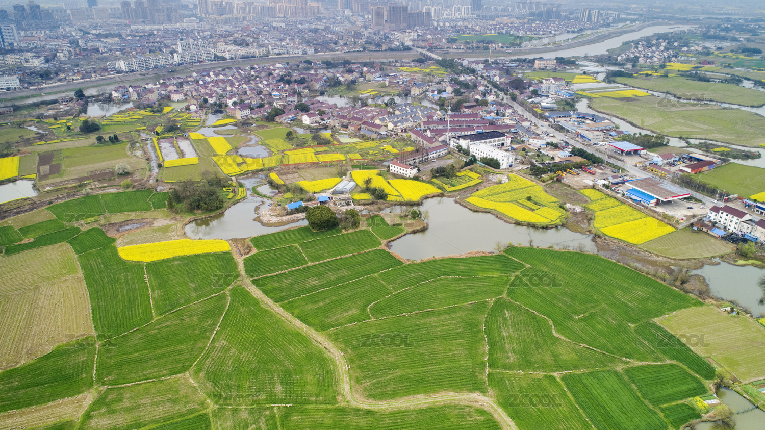 远景,无人,航拍视角,黄色,白昼,春天,春季,植物,花朵,块状