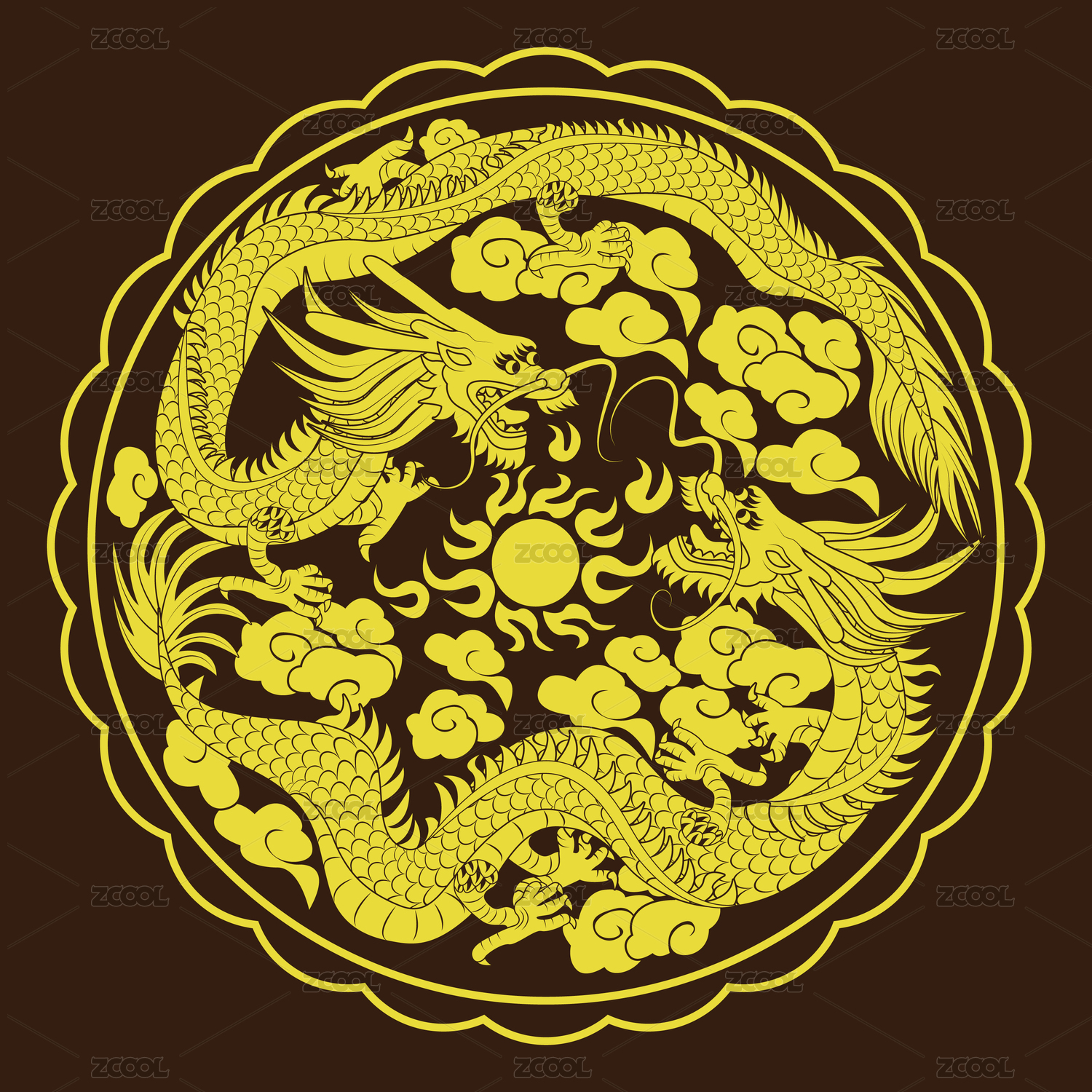 传统圆形龙纹花纹喜庆图案