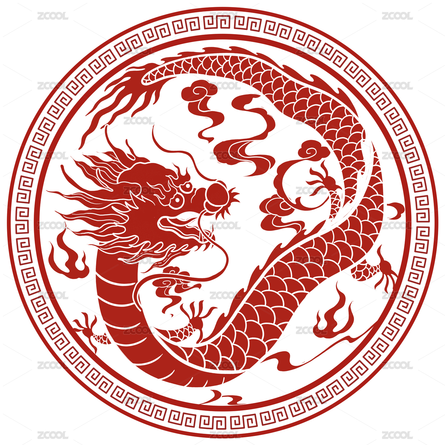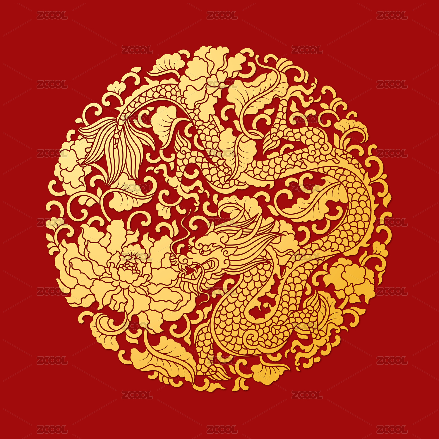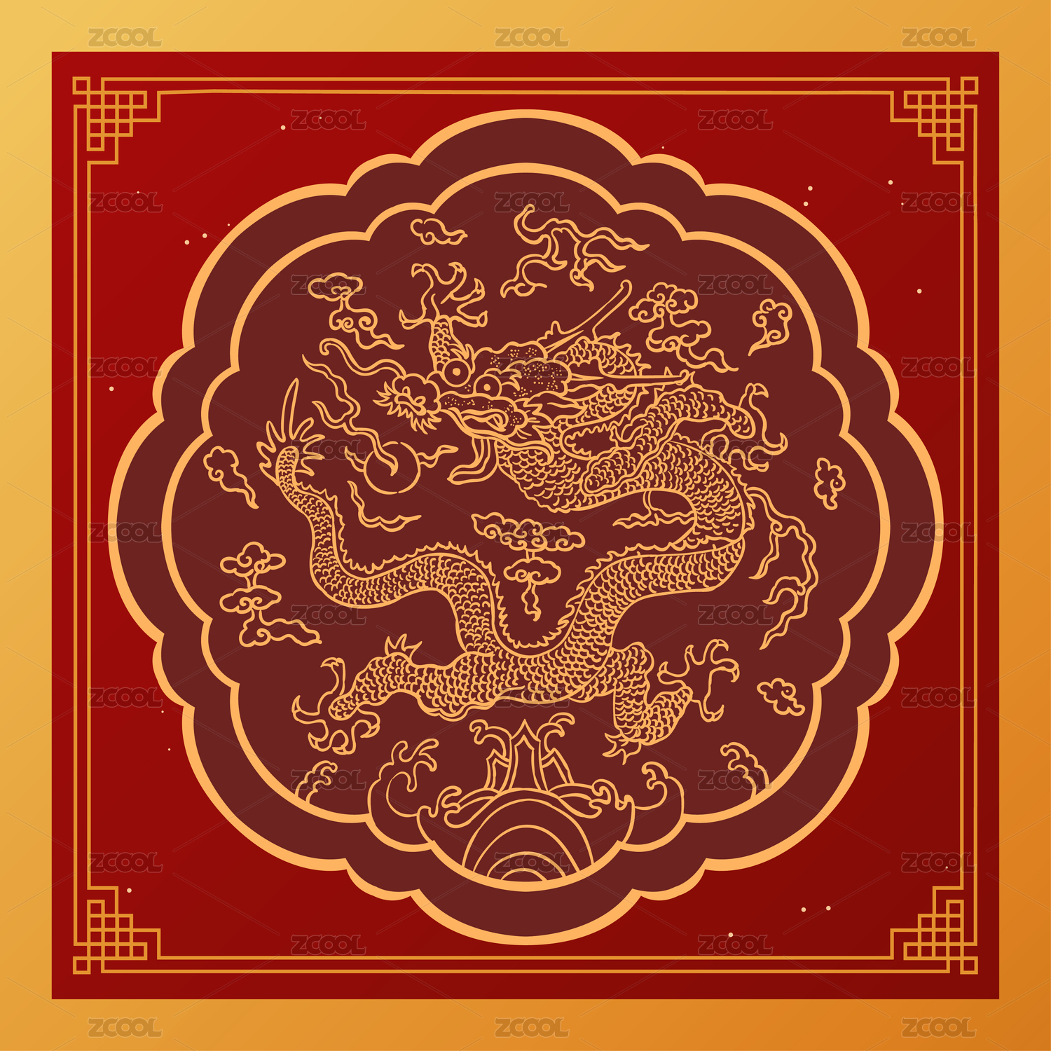 传统龙纹圆形图案红色背景