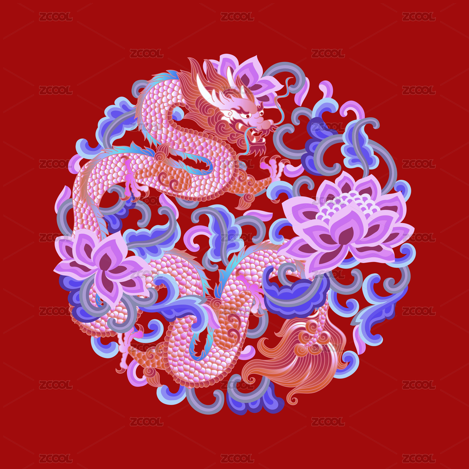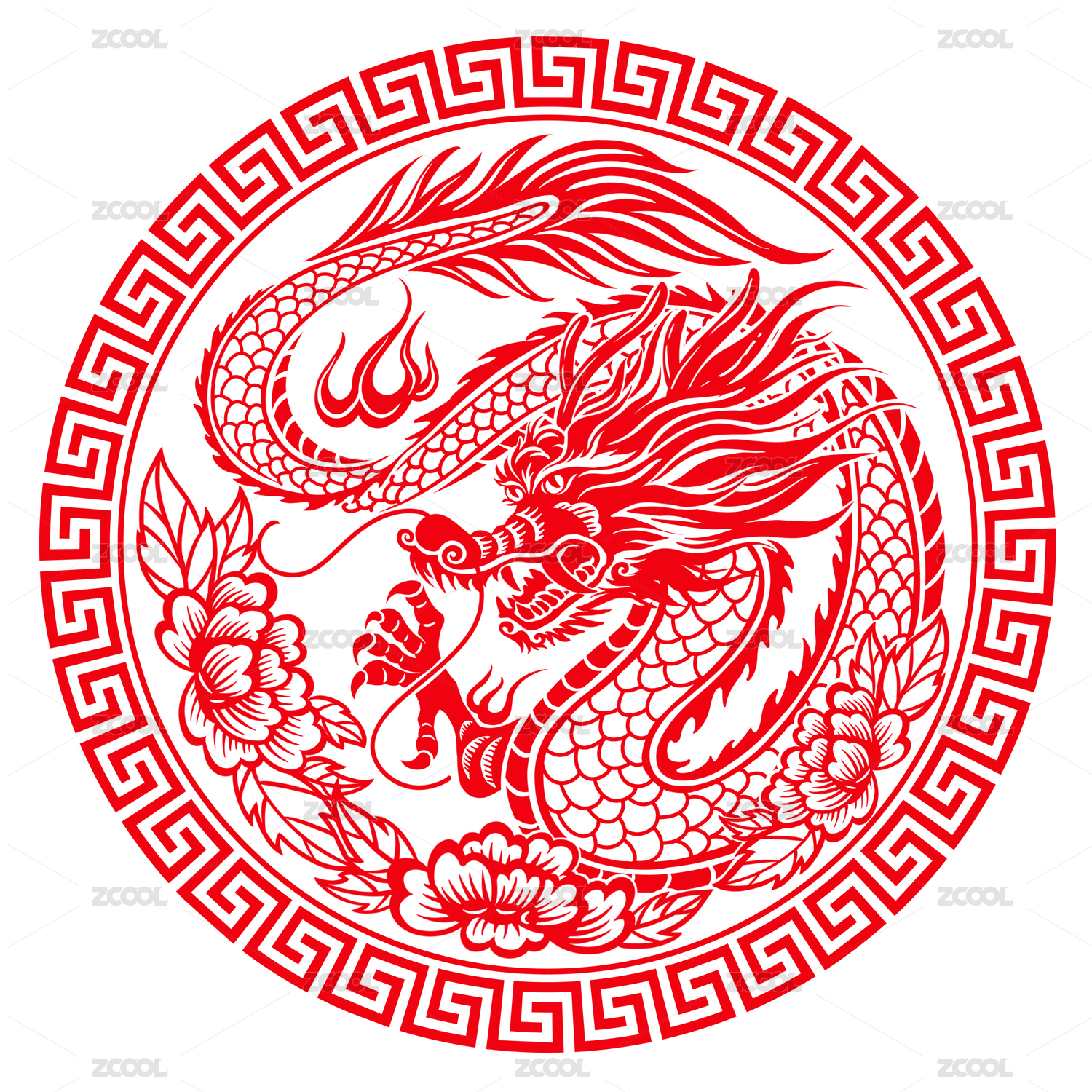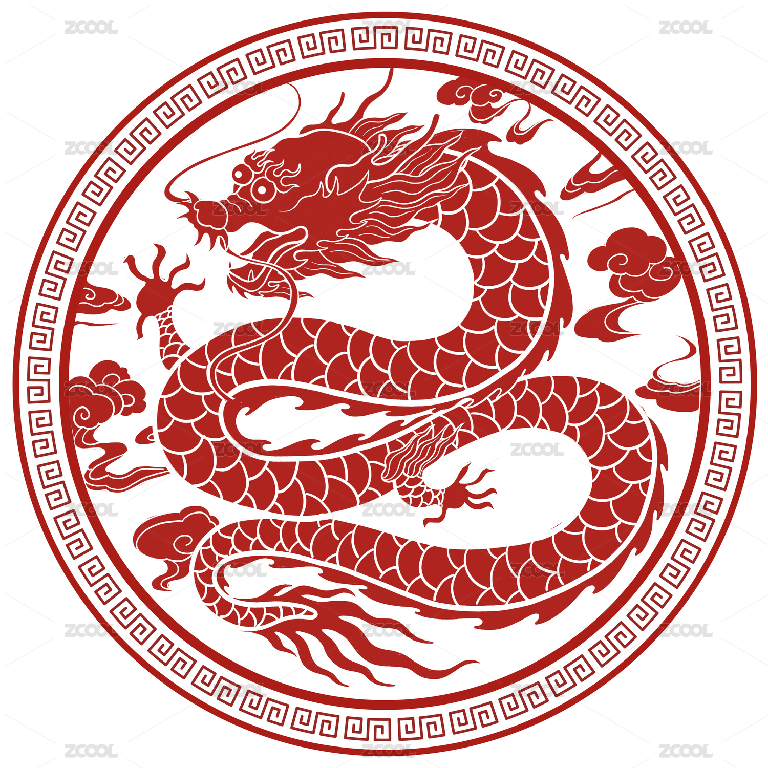 传统龙纹圆形图案红色背景