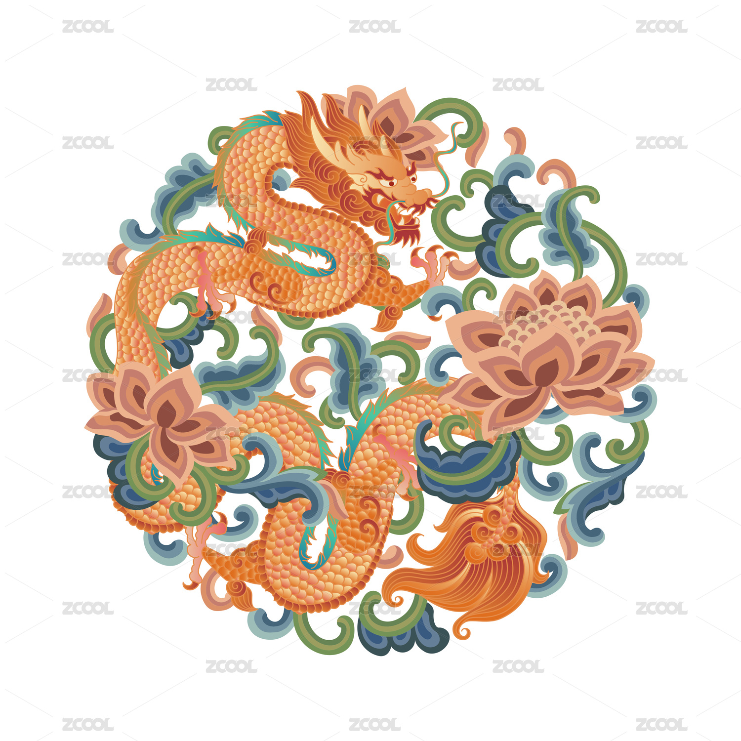 传统龙纹圆形彩色图案白色背景