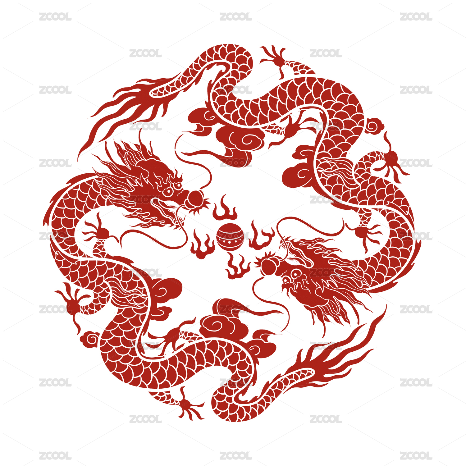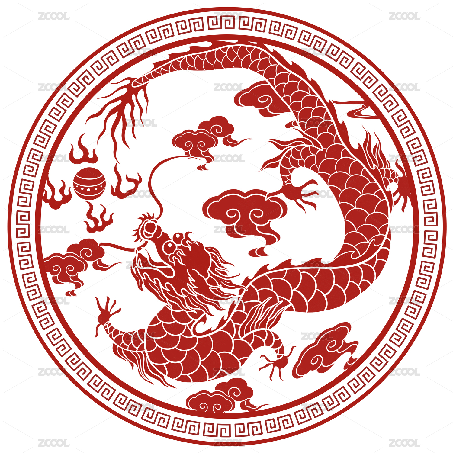 中国红龙纹饰图案
