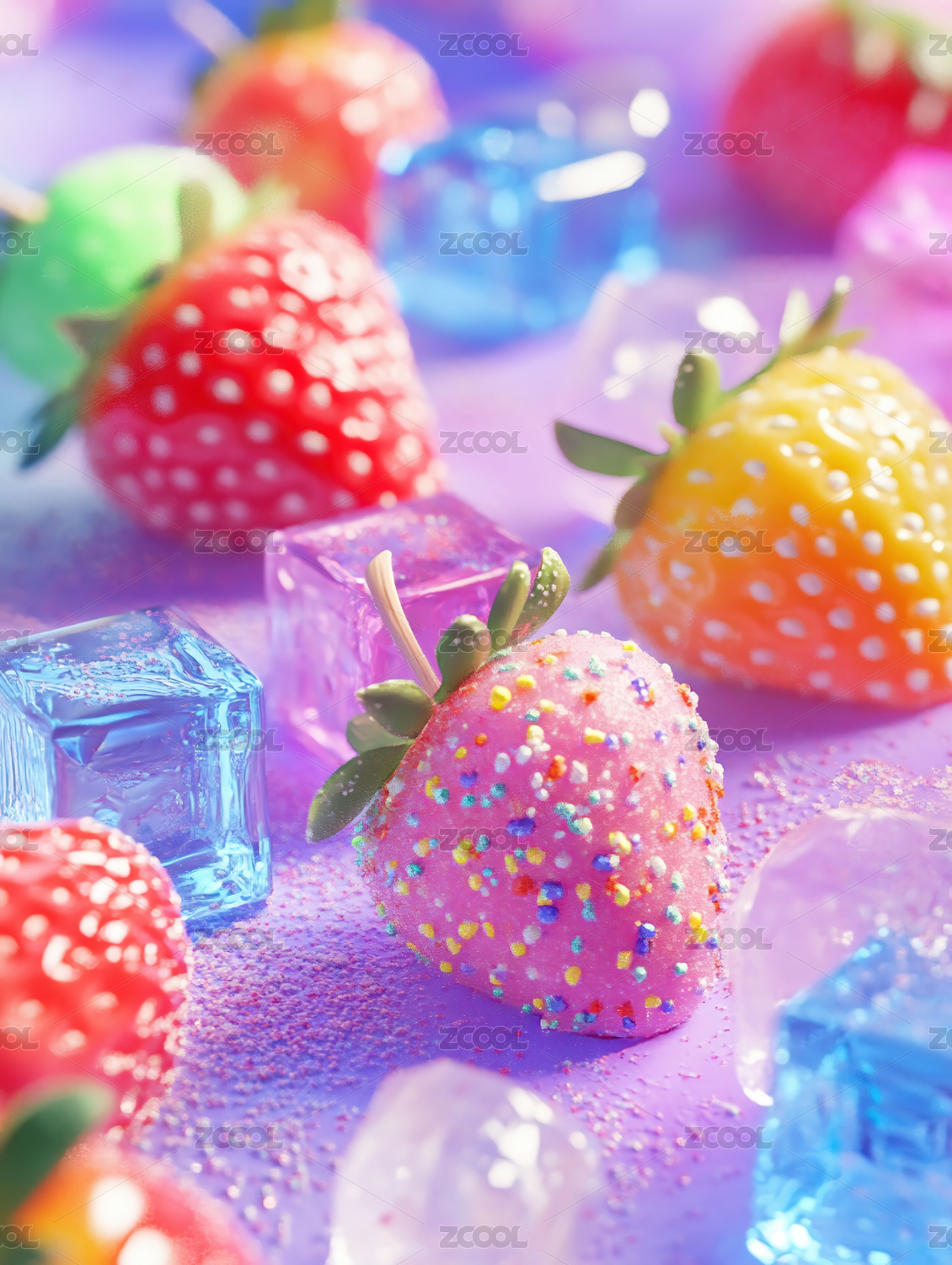 糖果,糖,草莓,冰块,3D,立体,场景,背景,插画