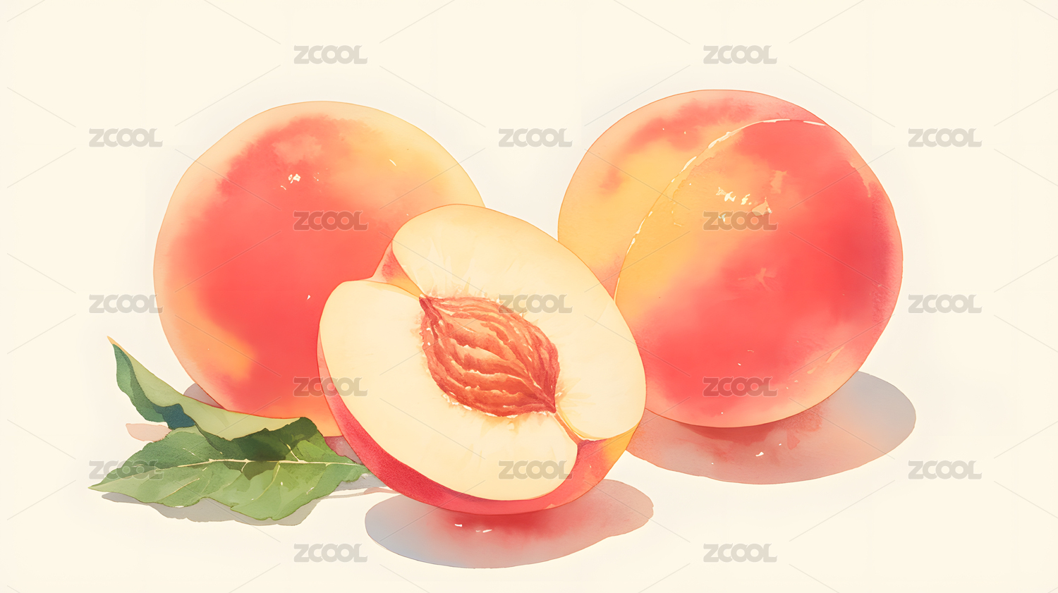 水蜜桃,桃子,脆桃,水果,新鲜,包装,图案,设计,海报,插画