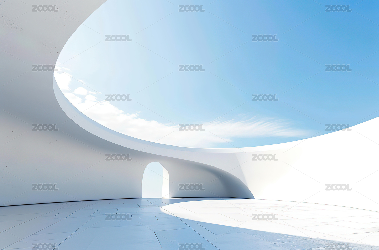 白色曲线建筑与蓝天