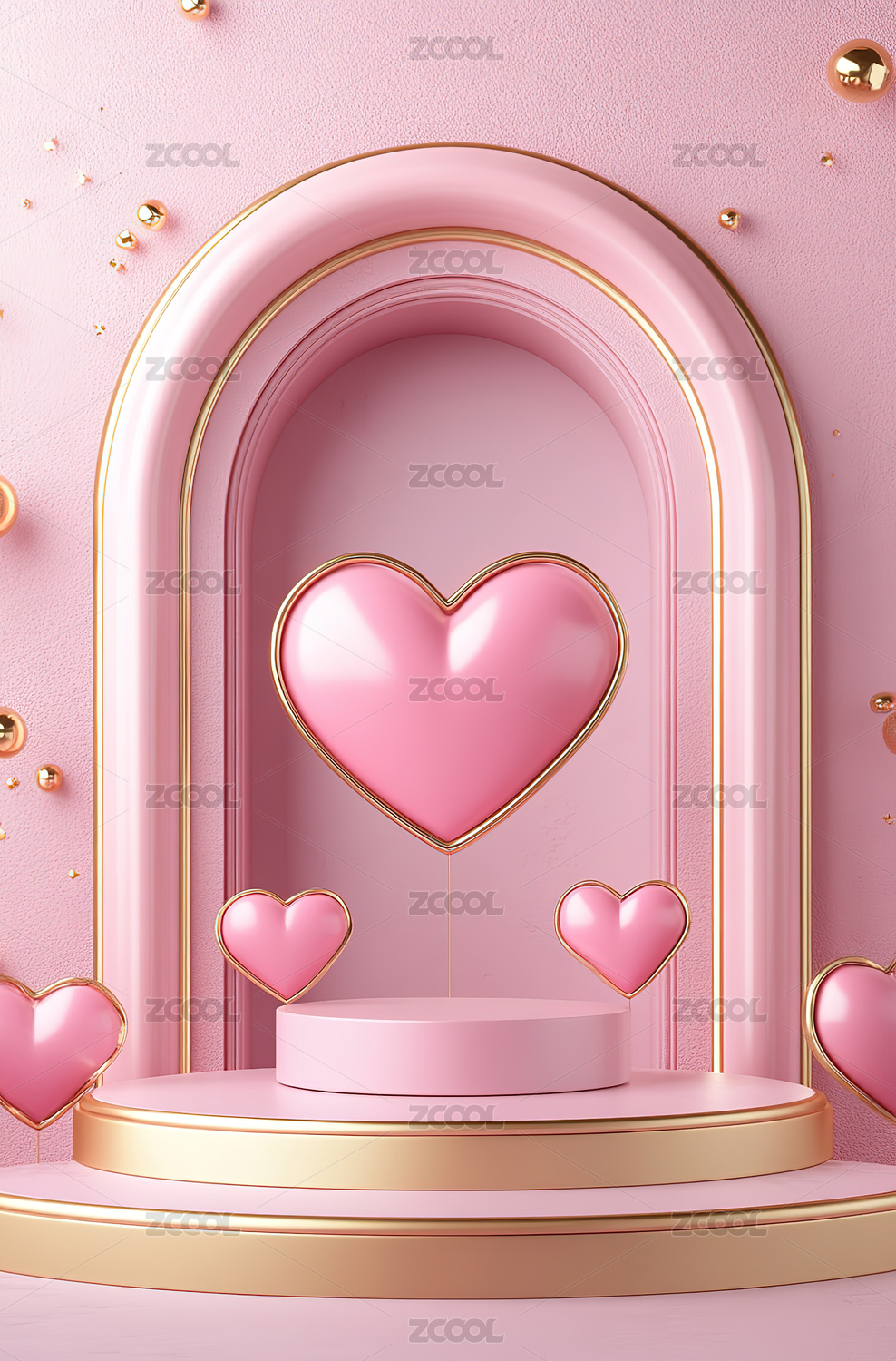 粉红色背景下心形展台