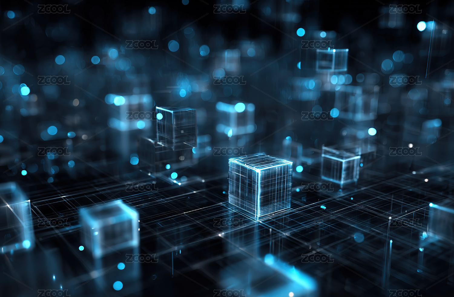蓝色光立方体网络场景