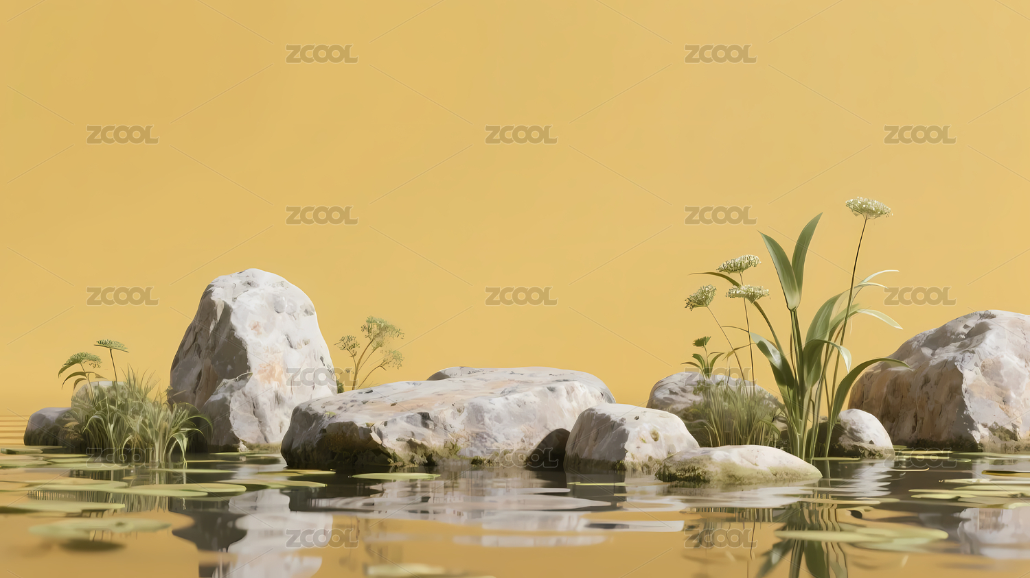 岩石植物黄色水景