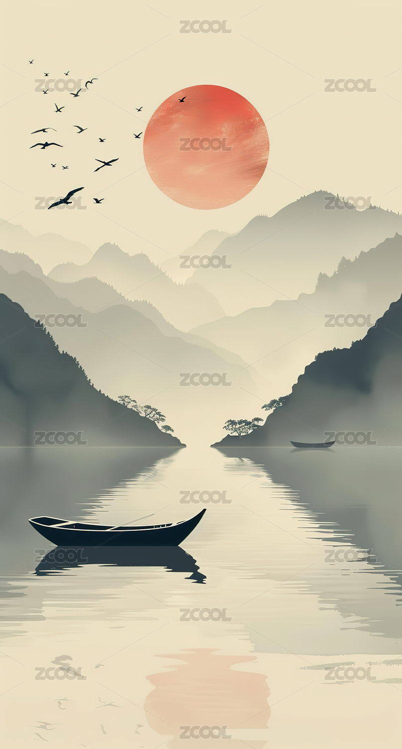 插画,背景,艺术,中国画,地形,高山,写意画,水墨画,自然,风景