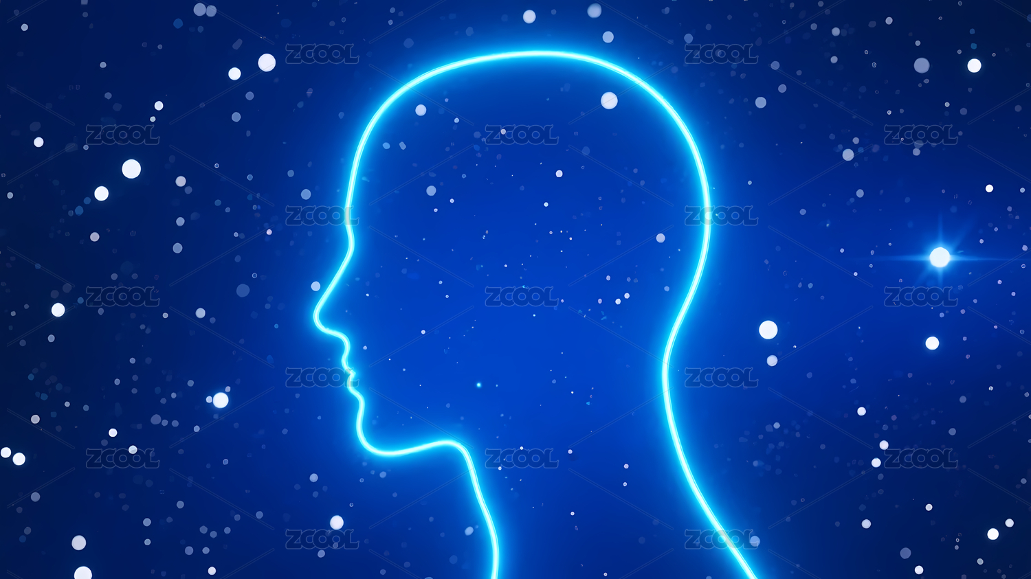 蓝色,粒子,发光,人头,脸,智慧,未来,科技,虚拟,抽象