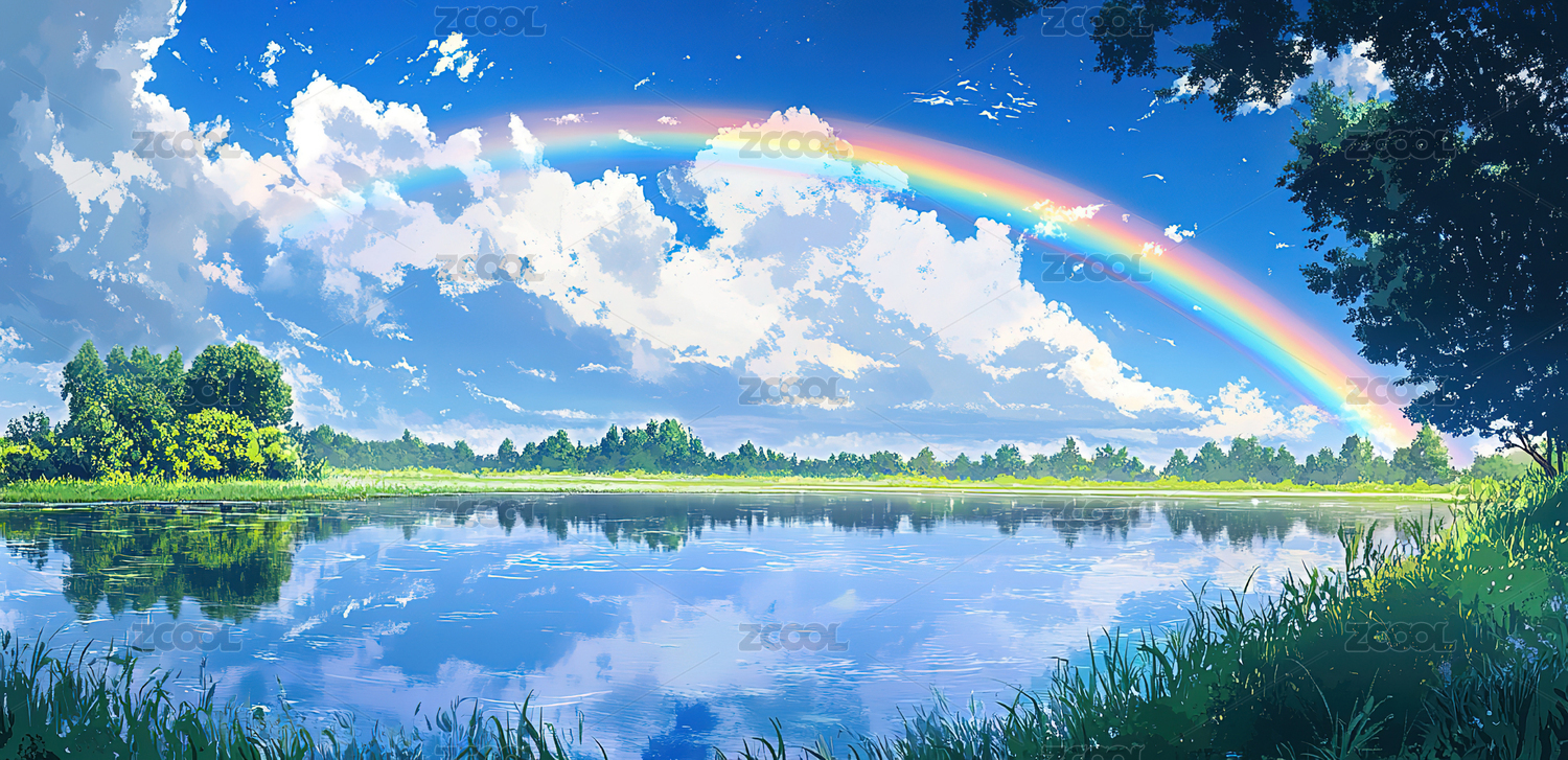 风景,云,宁静,地形,白昼,生长,绿色,彩虹,树,户外