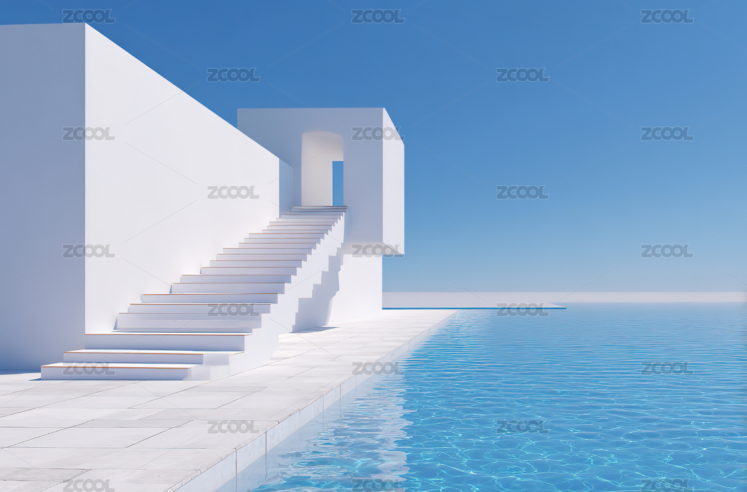 建筑,现代,白昼,建筑外部,AI数字艺术,三维图形,白色,插画,墙,留白
