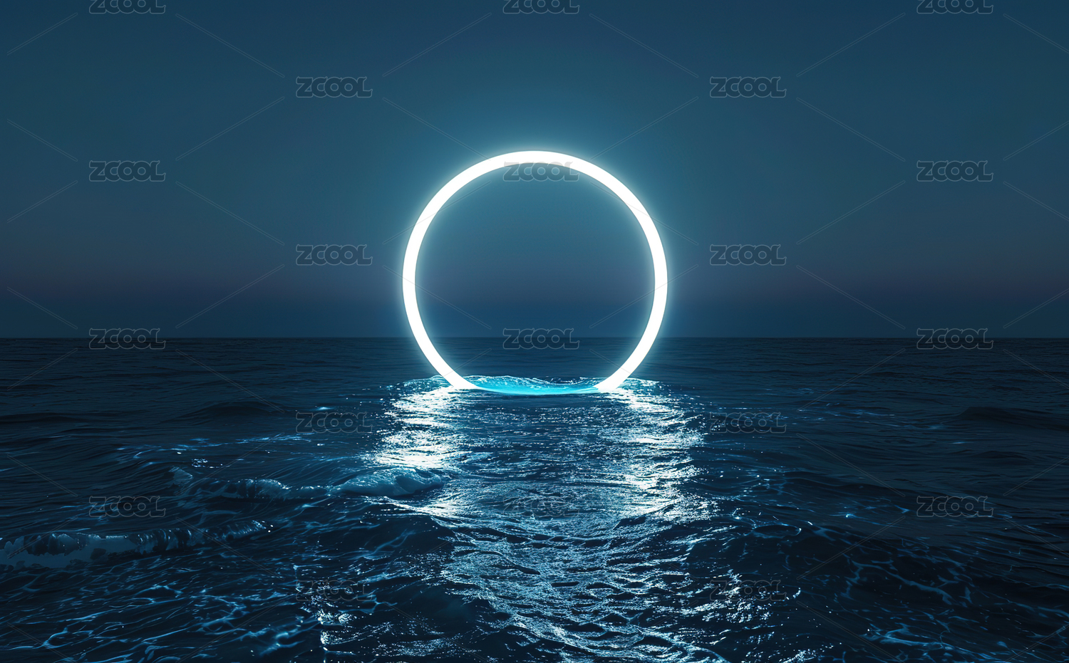 自然美,天空,光,未来,风景,AI数字艺术,蓝色,水,科学技术,发光