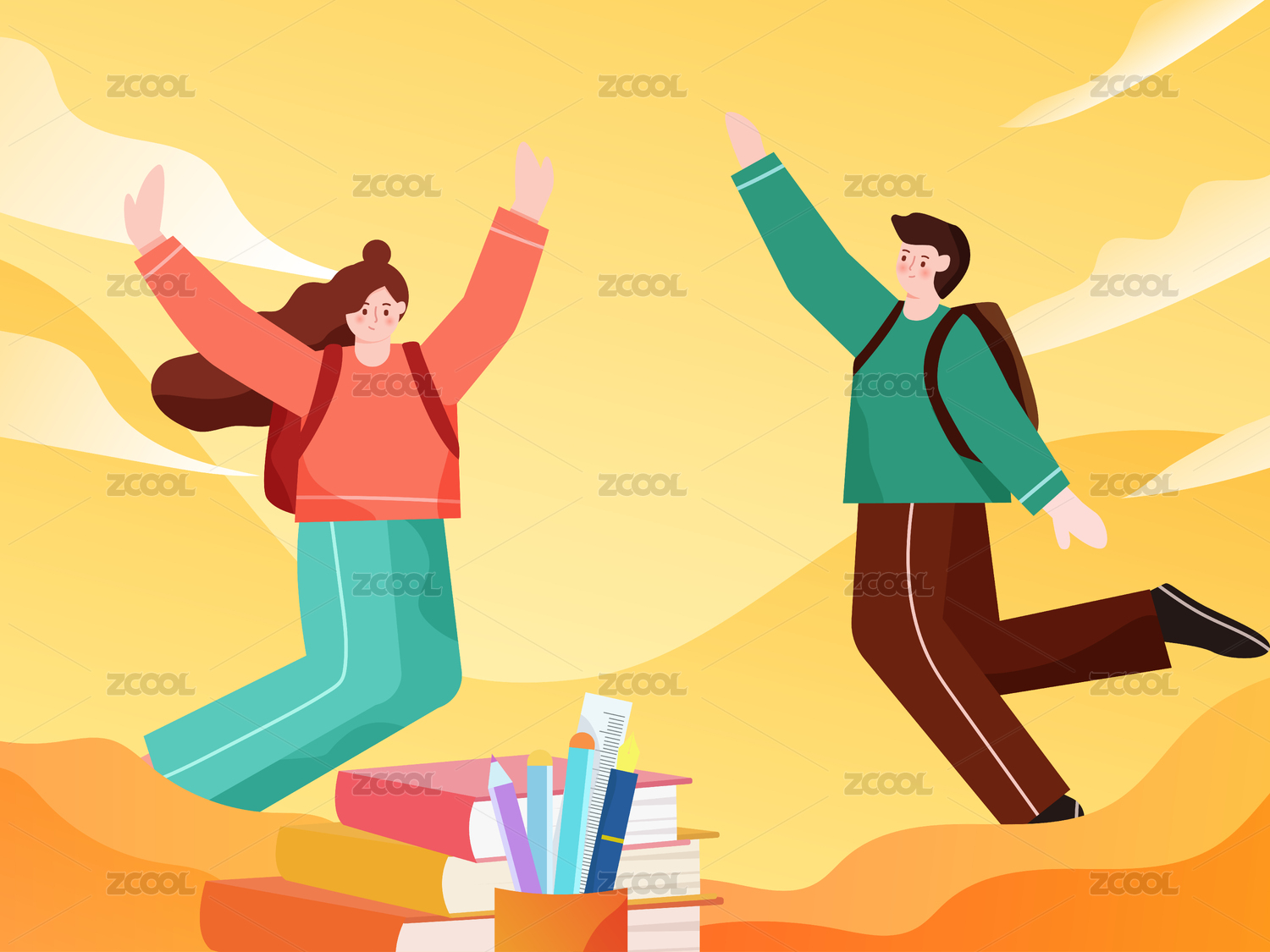 教育,学生,沙漏,加油,跳跃,冲刺,扁平,插画