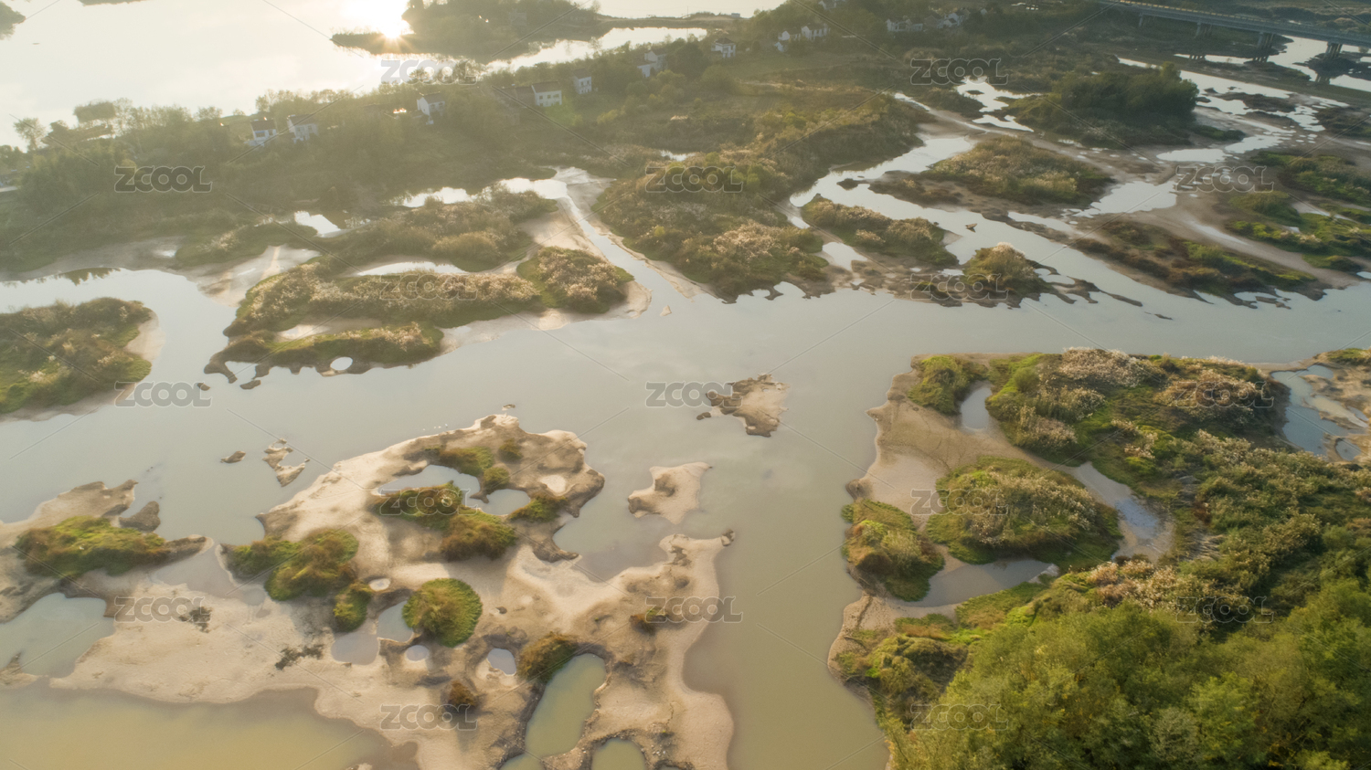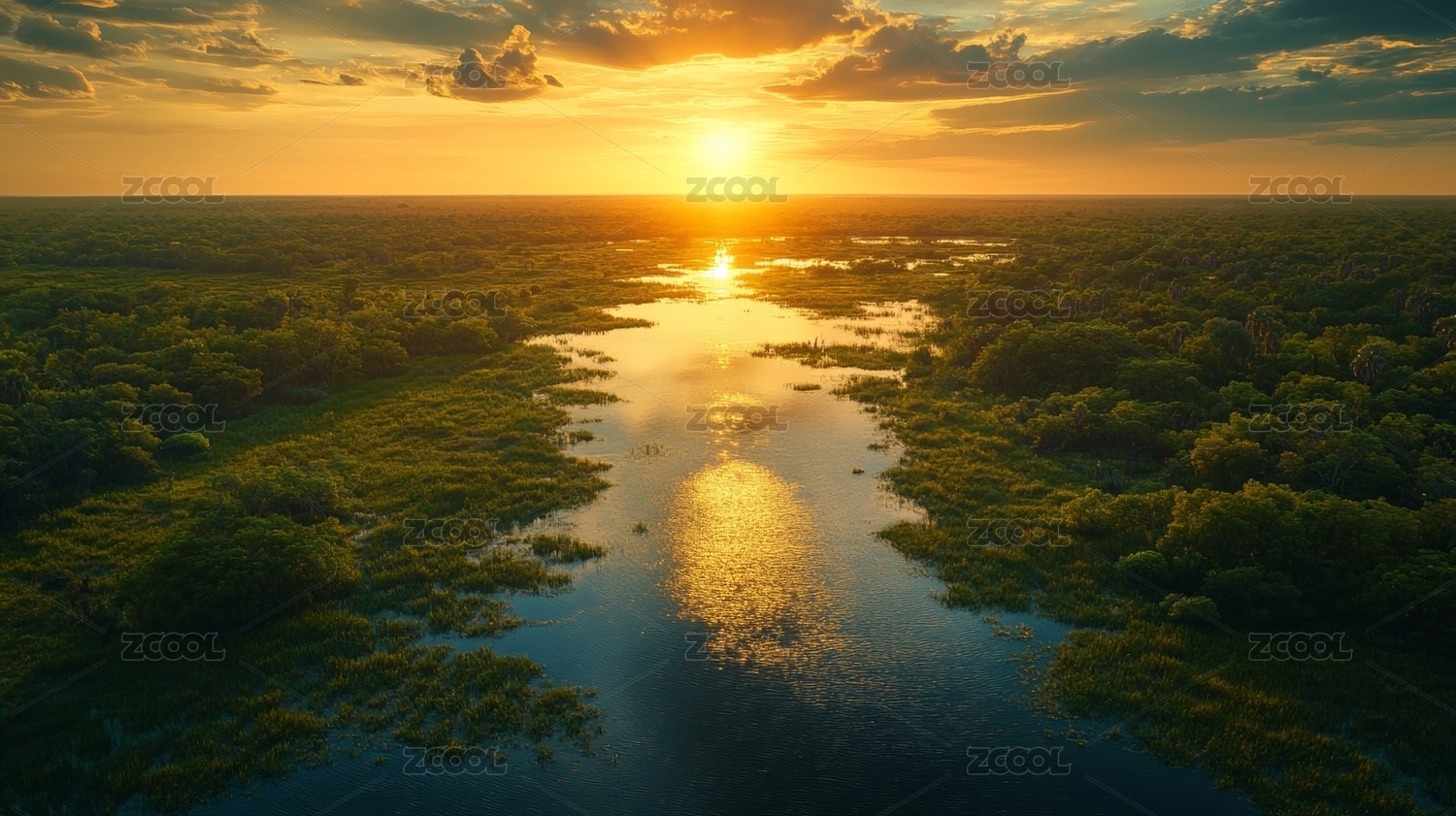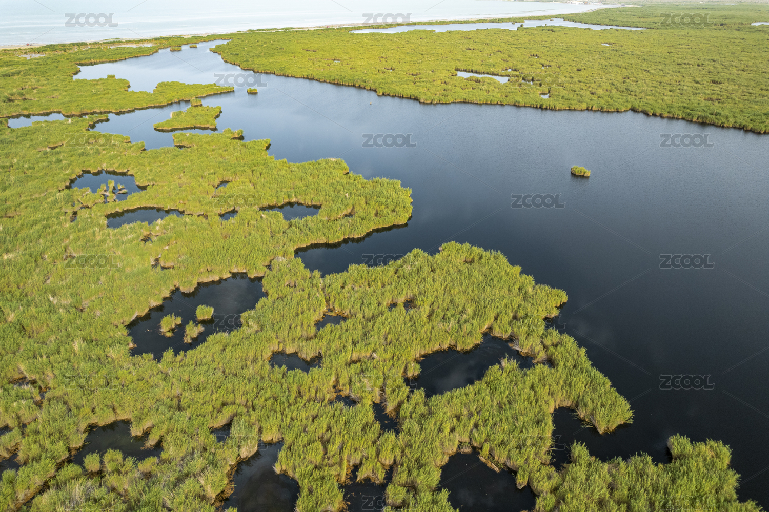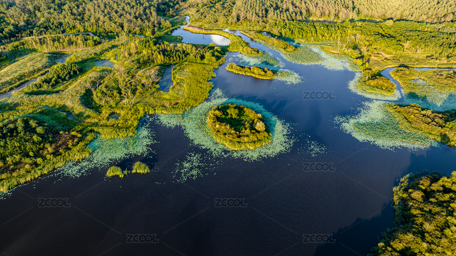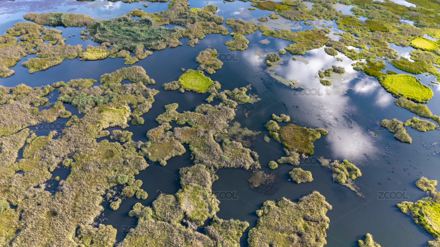 清新明亮俯视航拍湿地湖泊的水草水藻插画