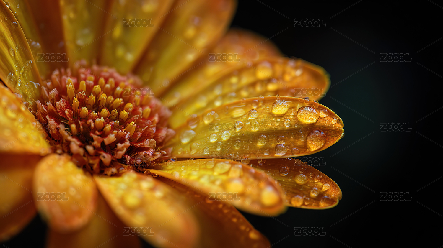 背景,花,花元素,摄影,植物,水,金盏花,水珠,橙色,AIGC202402