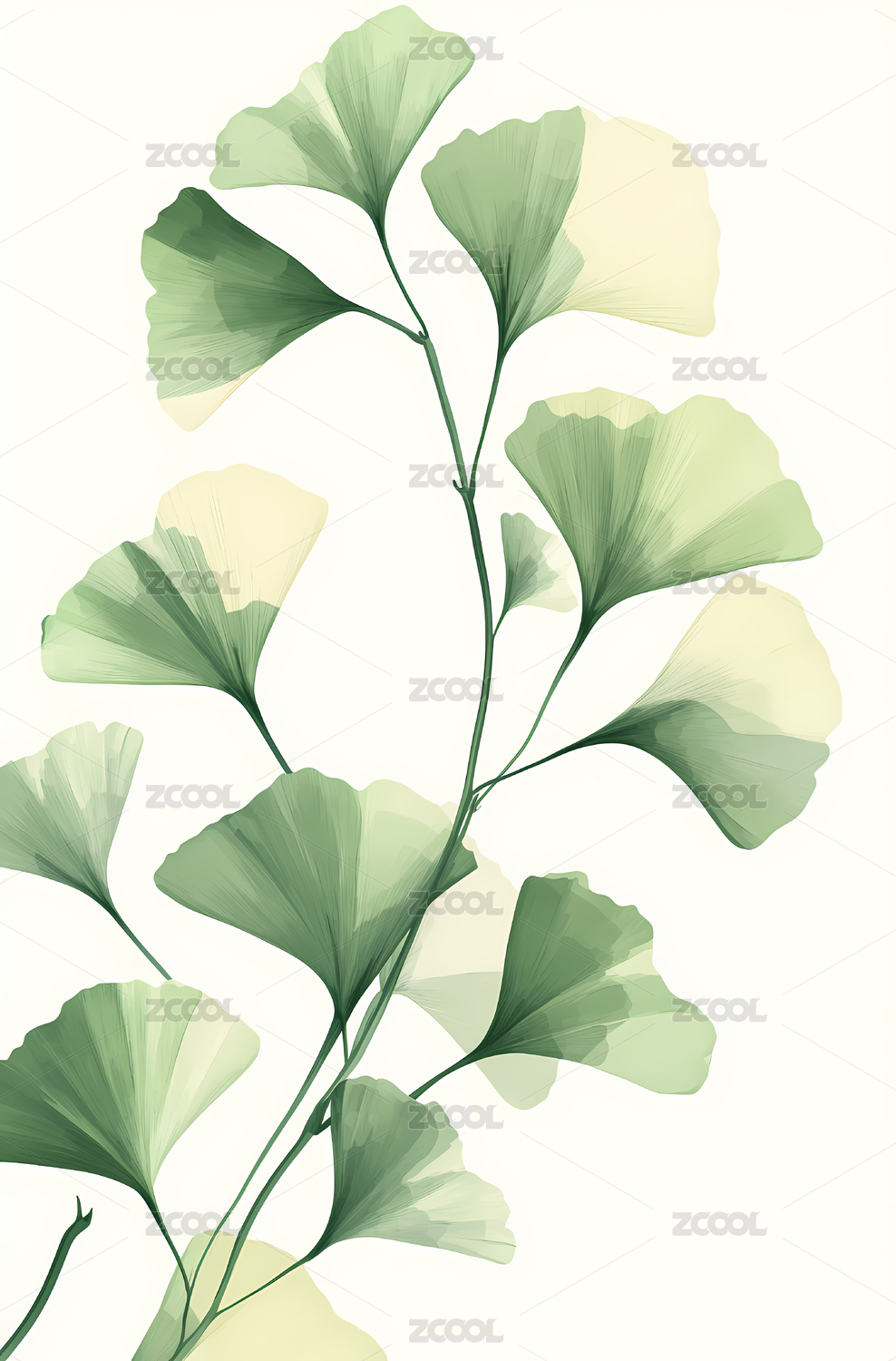 绿色银杏叶水彩风背景