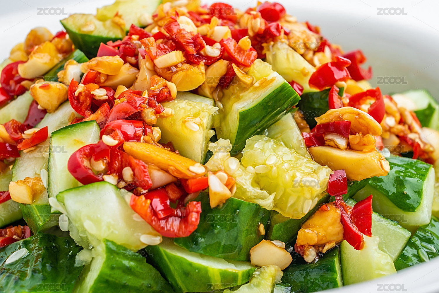 白色背景中的一盘凉拌青瓜