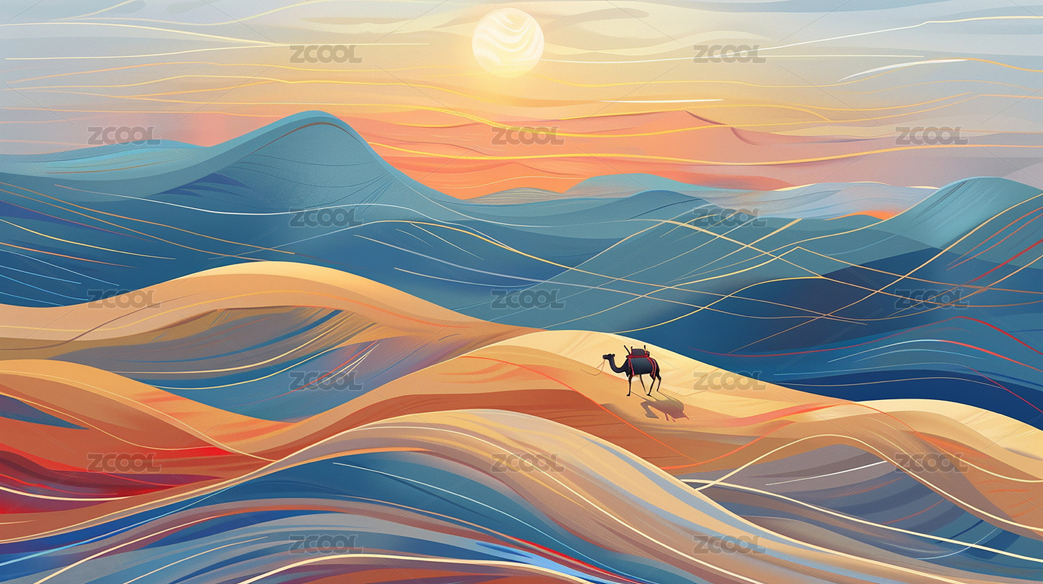 中国风,中式,优雅,线条,中国传统,沙漠,沙丘,金色,骆驼,艺术