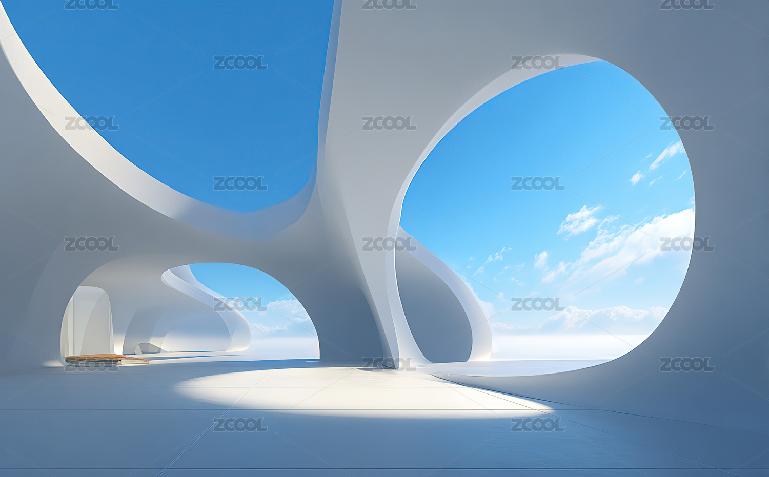 无人,背景,未来,弯曲,建筑,三维图形,创造力,蓝色,特写,玻璃