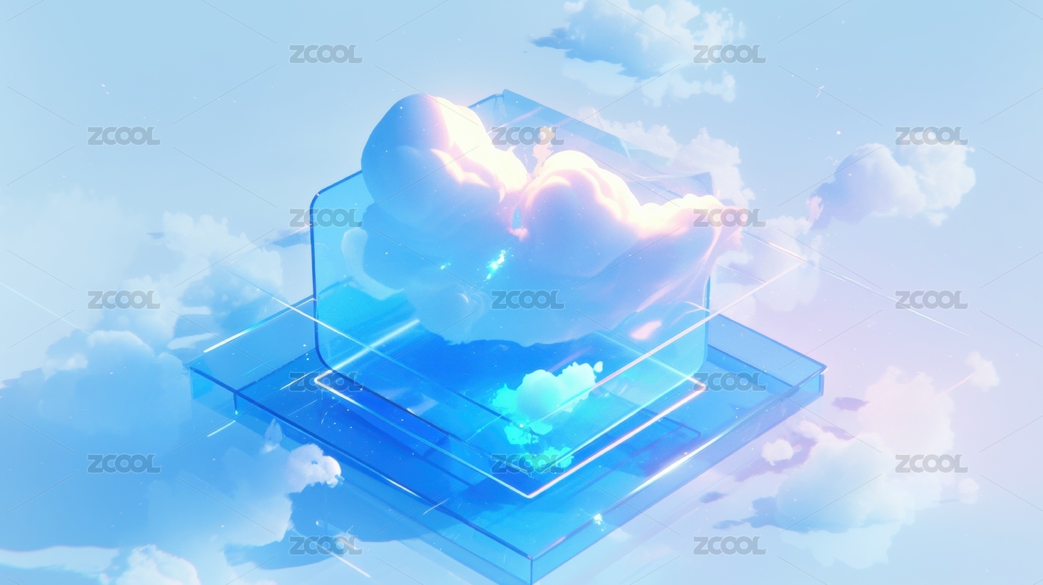蓝色云朵图标悬浮在设备上方
