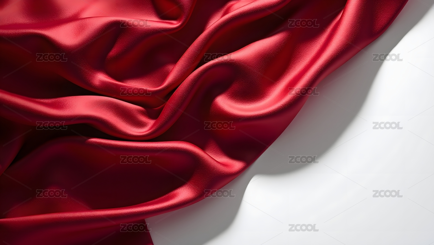 红色丝绸布料优雅褶皱特写