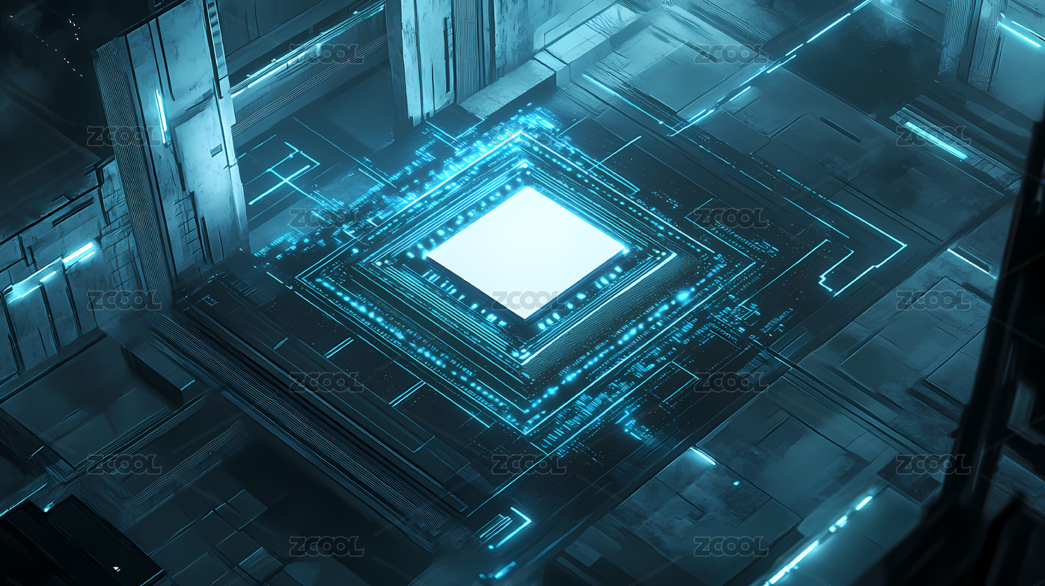 芯片金融科技赛博朋克人工智能三维渲染电路