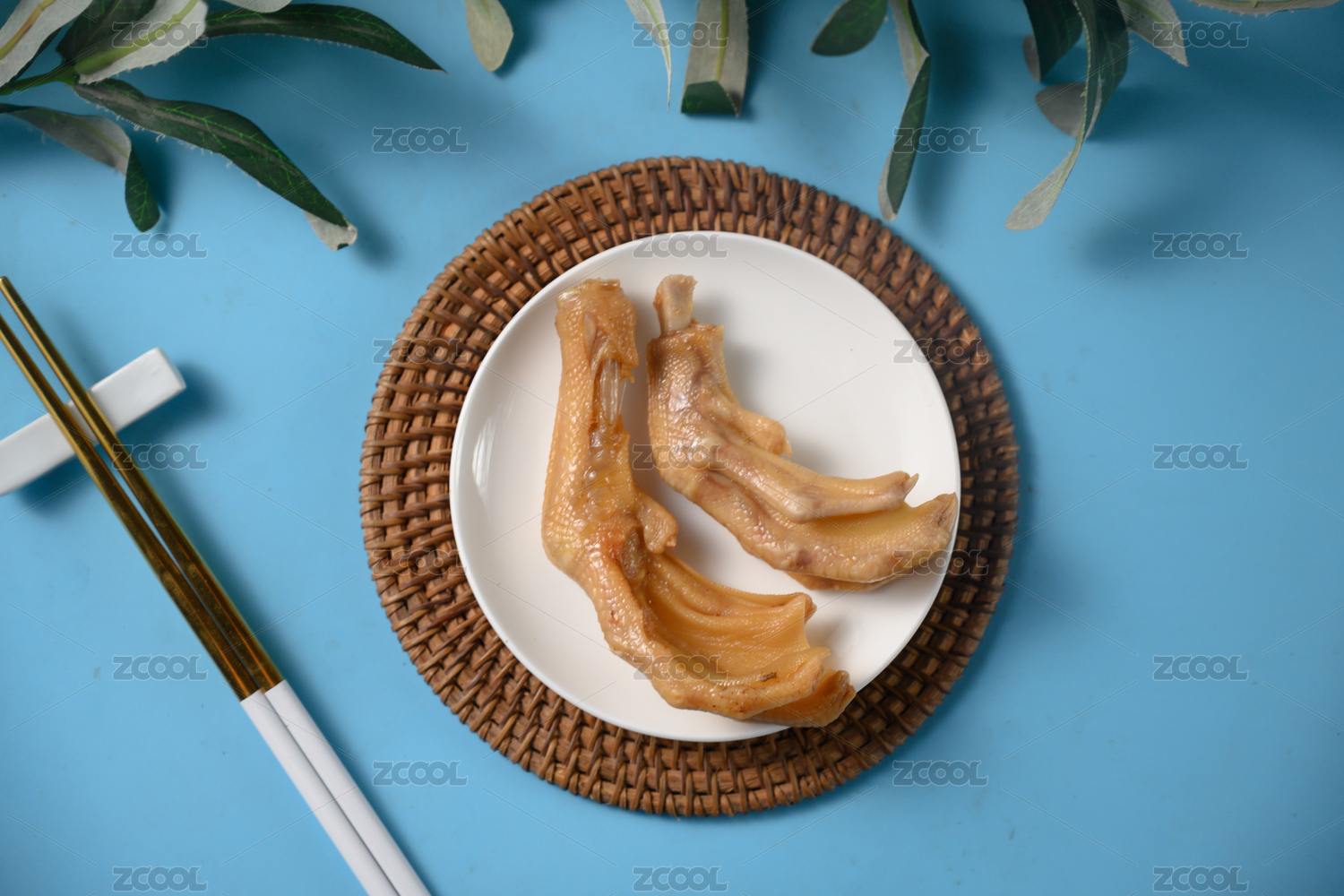 桌面上的盘子里的美味可口的盐焗鸭掌