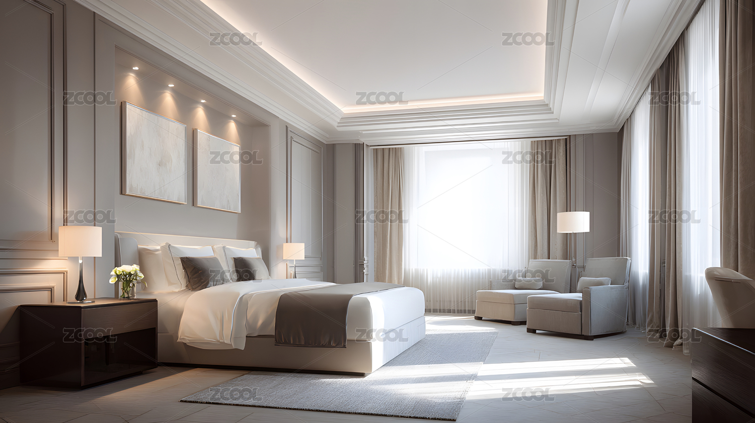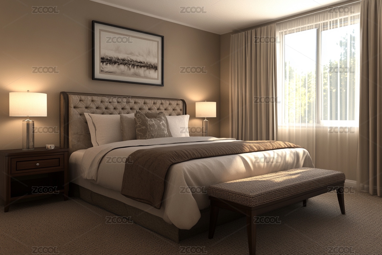 无人,室内,卧室,床,AI数字艺术,住宅内部,沙发,窗户,建筑,起居室