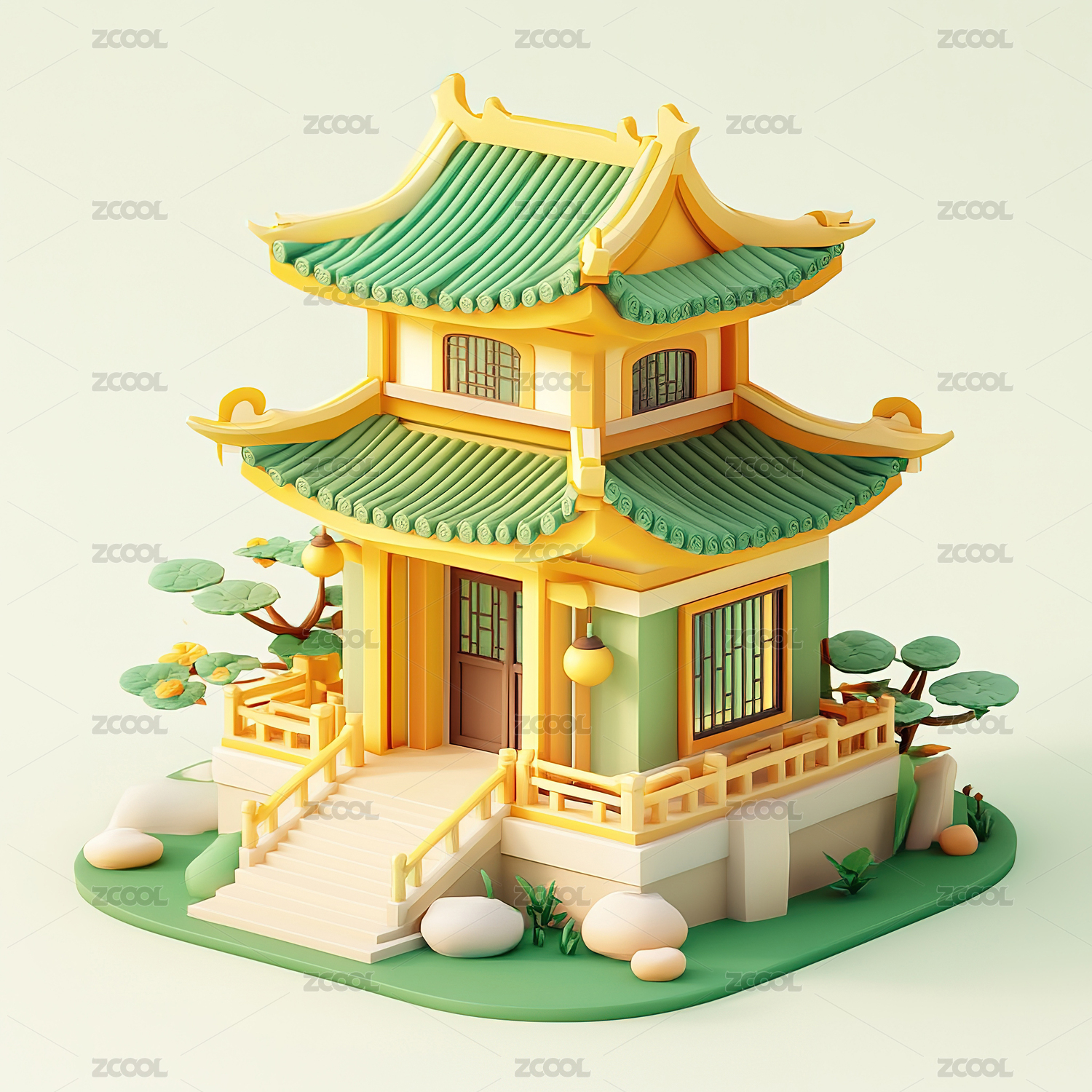 卡通粘土风的中式亭子